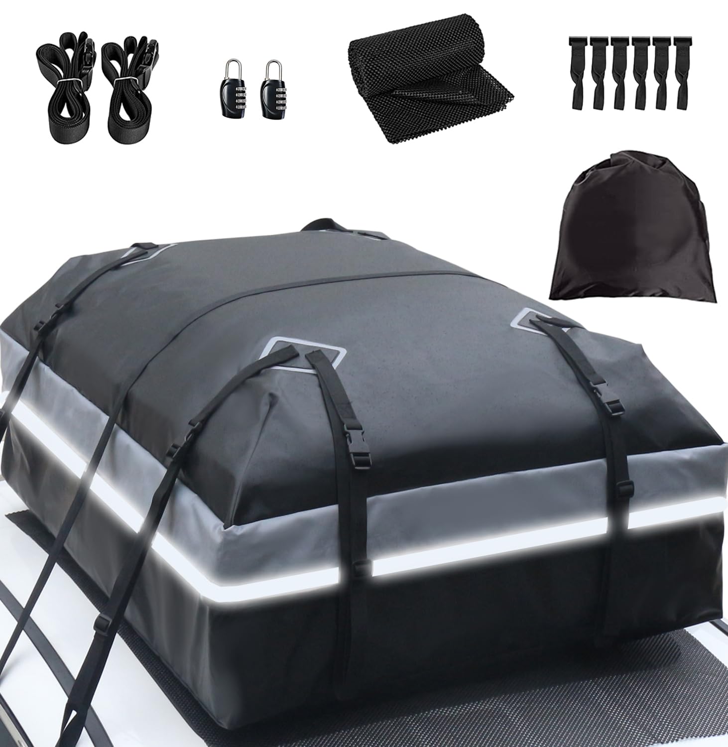 Favoto Bolsa de carga para techo de automóvil, 15 pies cúbicos, impermeable, para la mayoría de vehículos, SUV/Sedán, material de