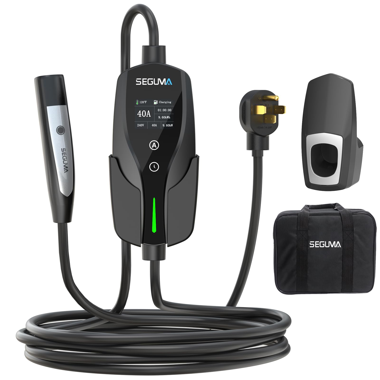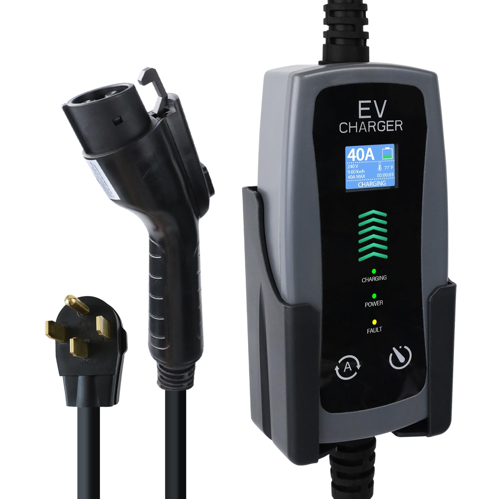 Cargador portátil de nivel 2 EV, 40A, 220-240V, con cable de carga de 25 pies y enchufe NEMA 14-50, carga de corriente/retardo aju
