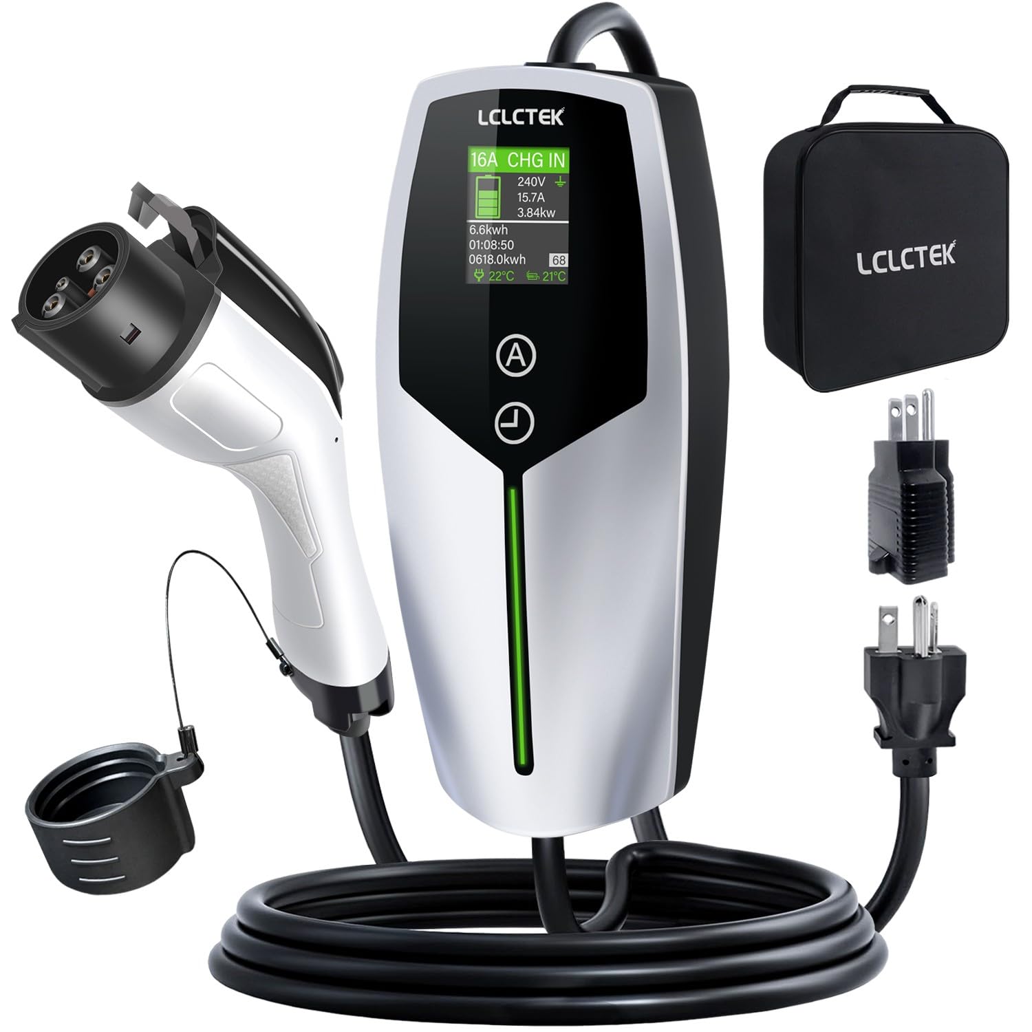 Cargador portátil de nivel 2 para vehículos eléctricos, 16 a 40 amperios, 240 voltios, cable de 25 pies, estación de carga portáti