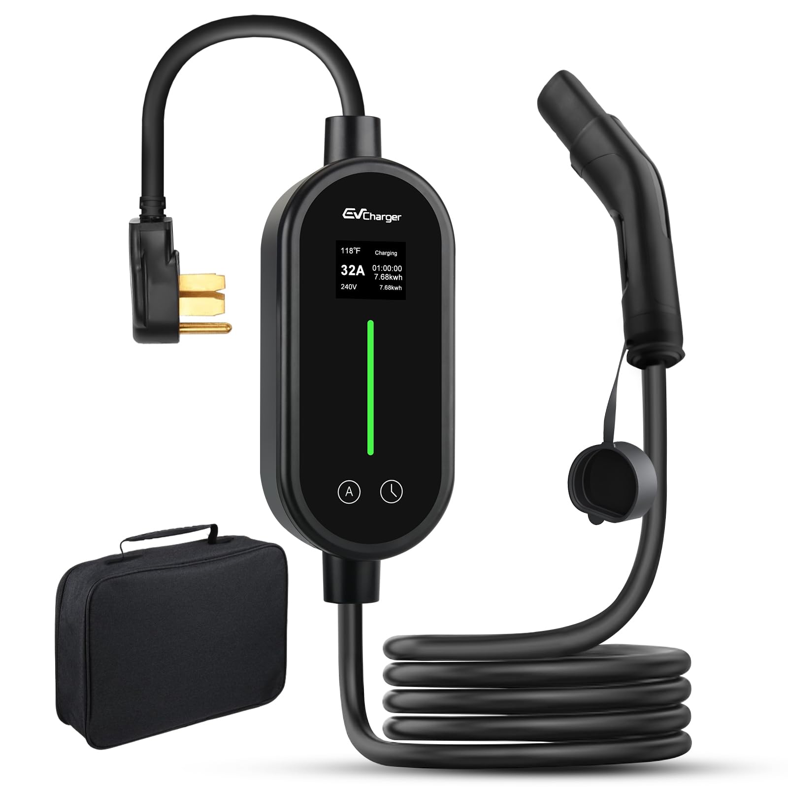 Cargador EV de nivel 2, cargador portátil de vehículo eléctrico de 28 pies, 32 amperios, 240 voltios, con enchufe NEMA 14-50P, est