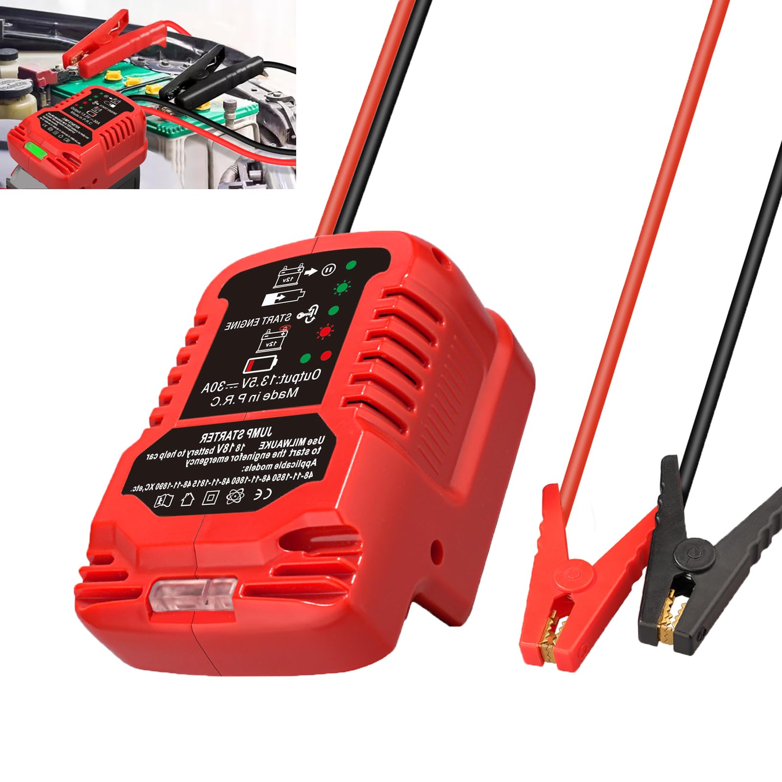 Adaptador de arranque para Milwaukee de 18 V con batería de iones de litio con abrazaderas de cable de puente, cargador de batería