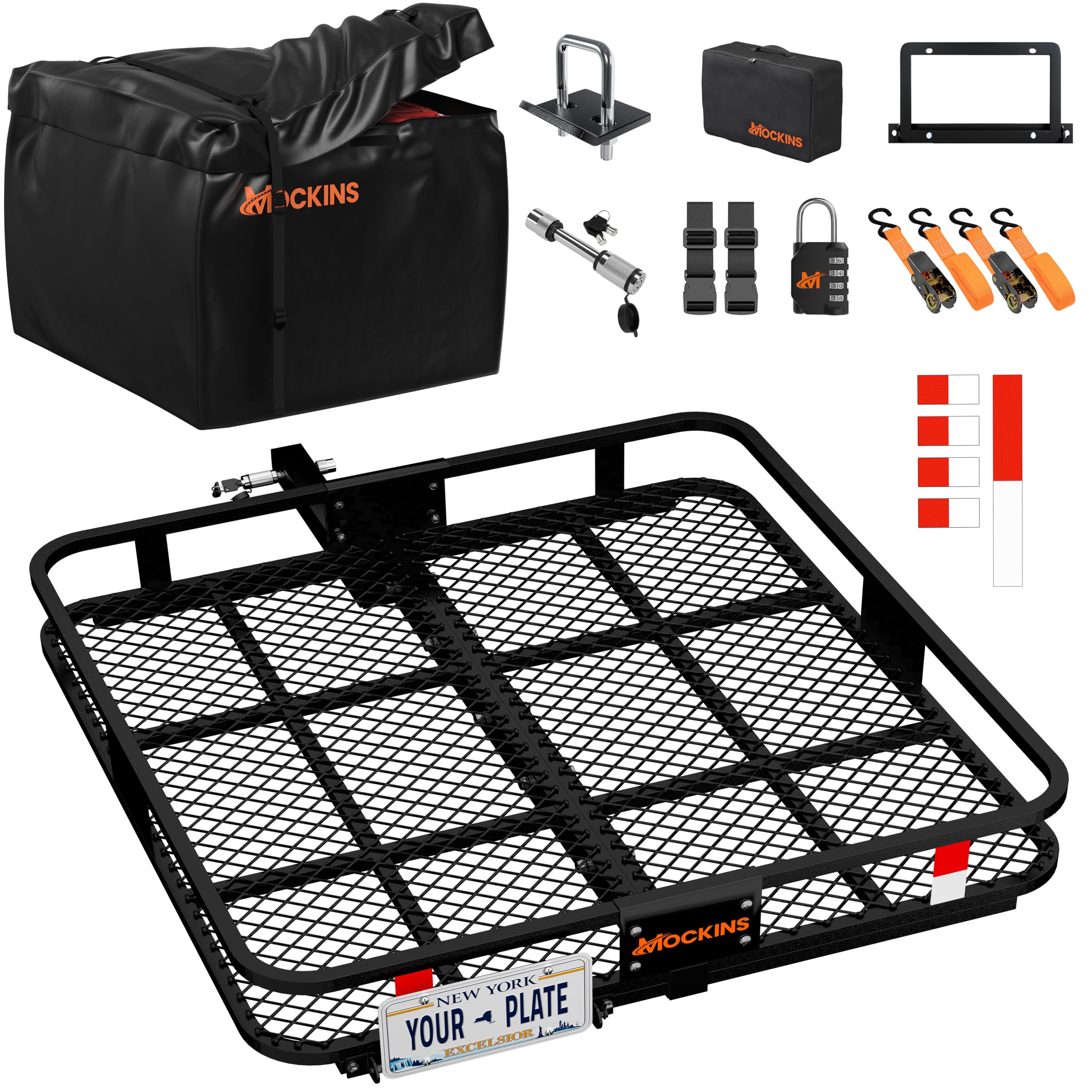 MeeFar Cesta de transporte de carga de montaje en enganche de 53 x 19 x 5 pulgadas + bolsa de carga impermeable (51 x 17 x 18 pulg