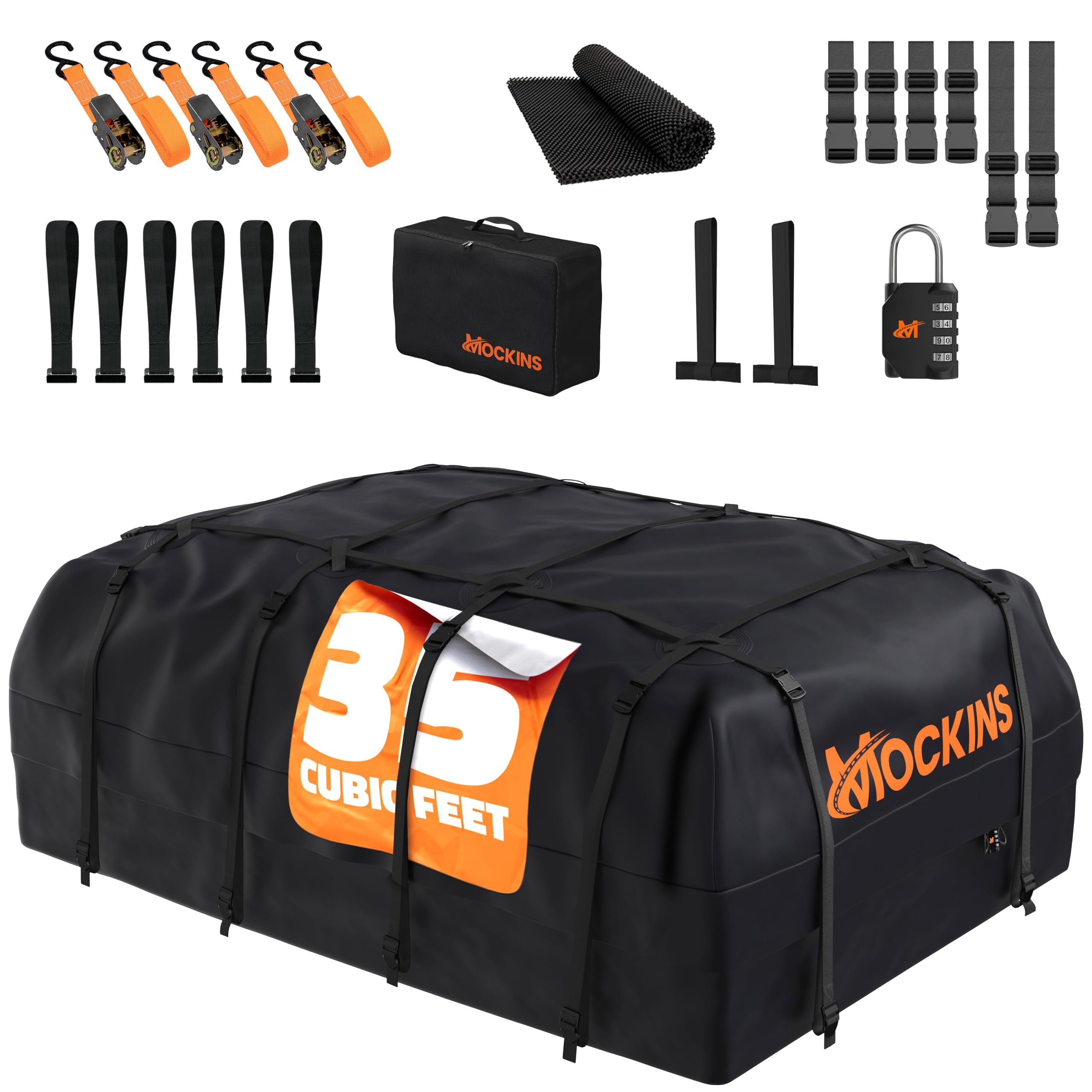 Mockins Bolsa de transporte de carga impermeable negra de 35 pies cúbicos | Bolsa de techo de automóvil de 60 x 42 x 24 pulgadas p