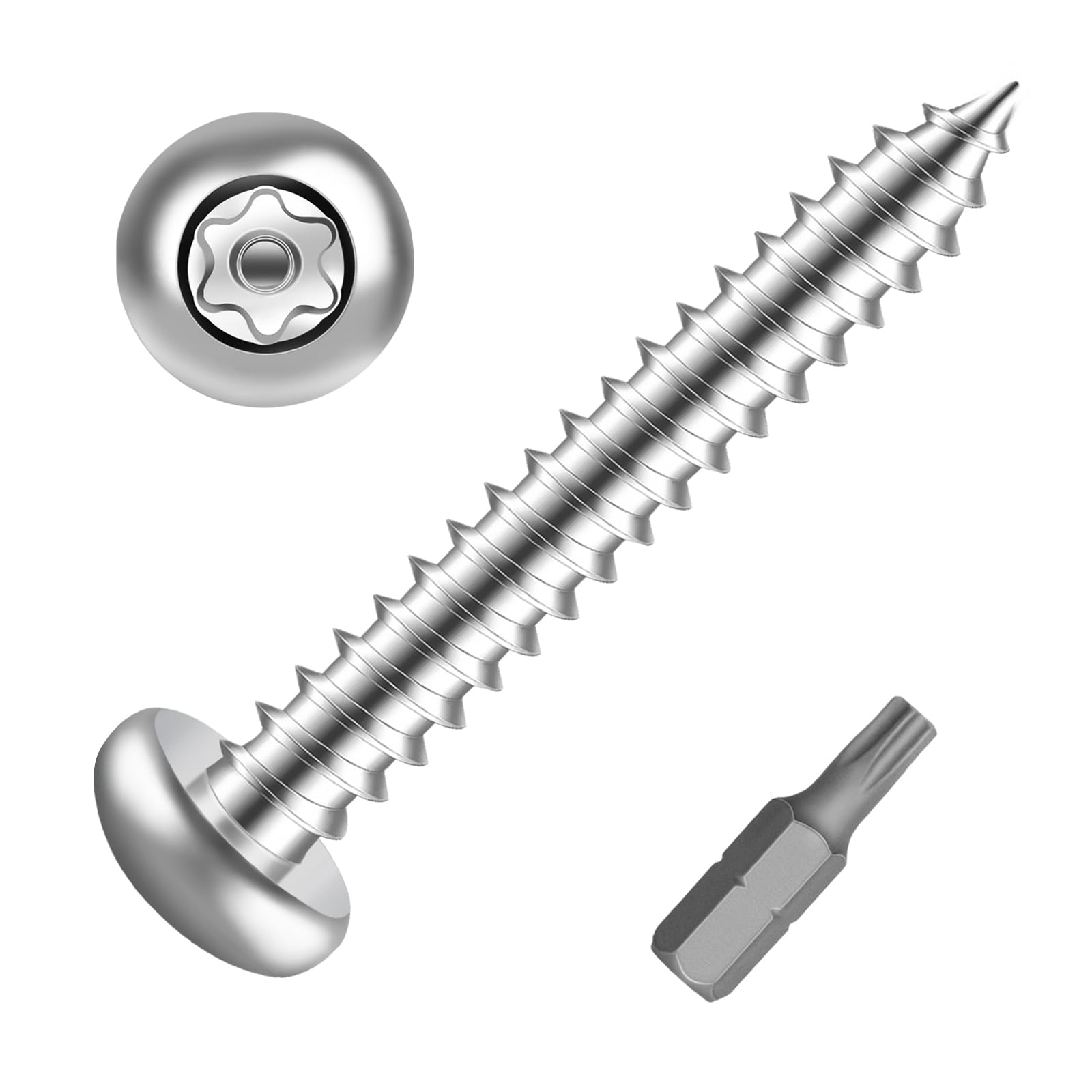 #8 x 1-1/4″ Cabeza de botón de acero inoxidable Torx Tornillos de chapa metálica Tornillos de seguridad de plata Tornillos antirro