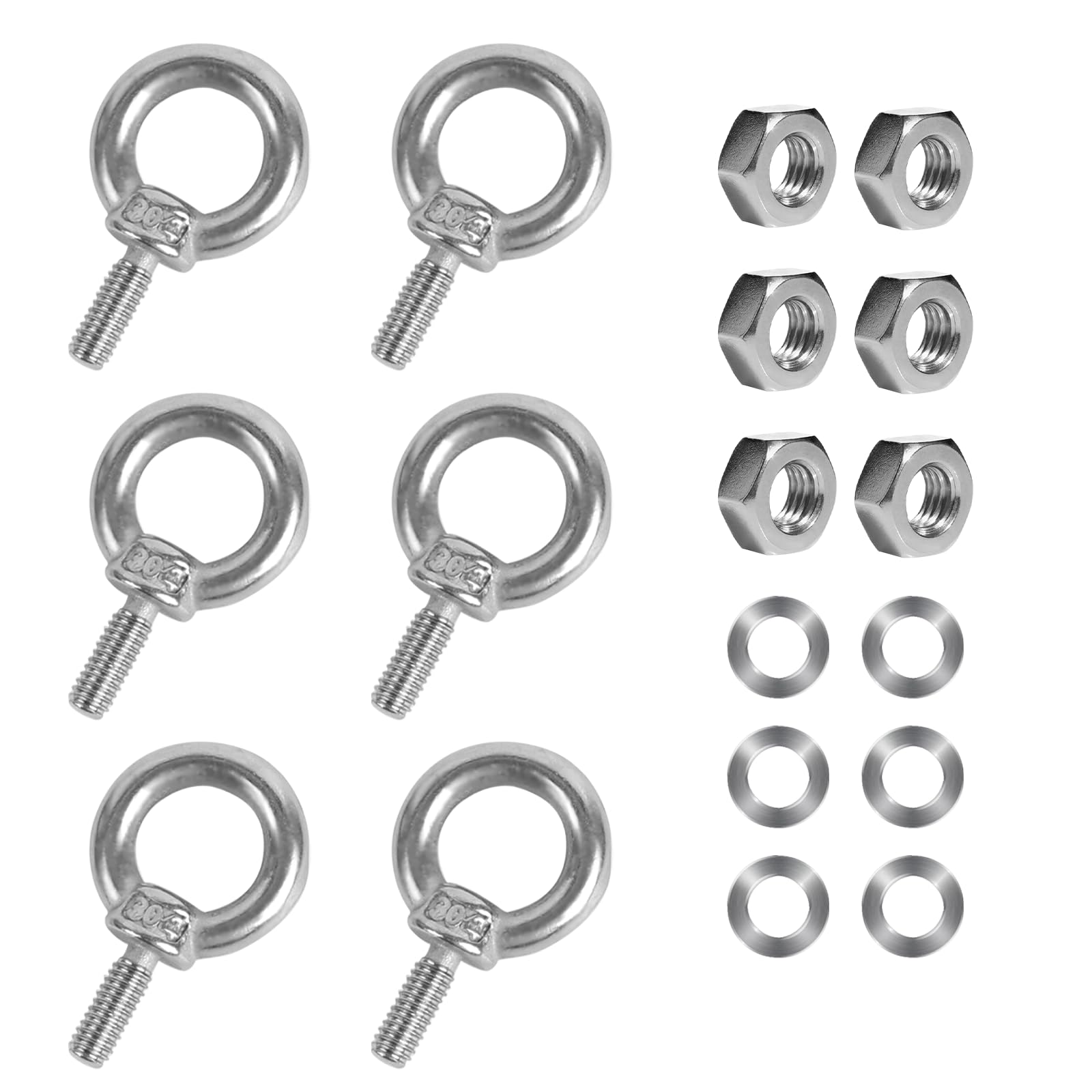 Paquete de 6 pernos de ojo M6 con tuercas de acero inoxidable M6 Tornillo de ojo resistente Perno de ojo macho Rosca Anillo de hom