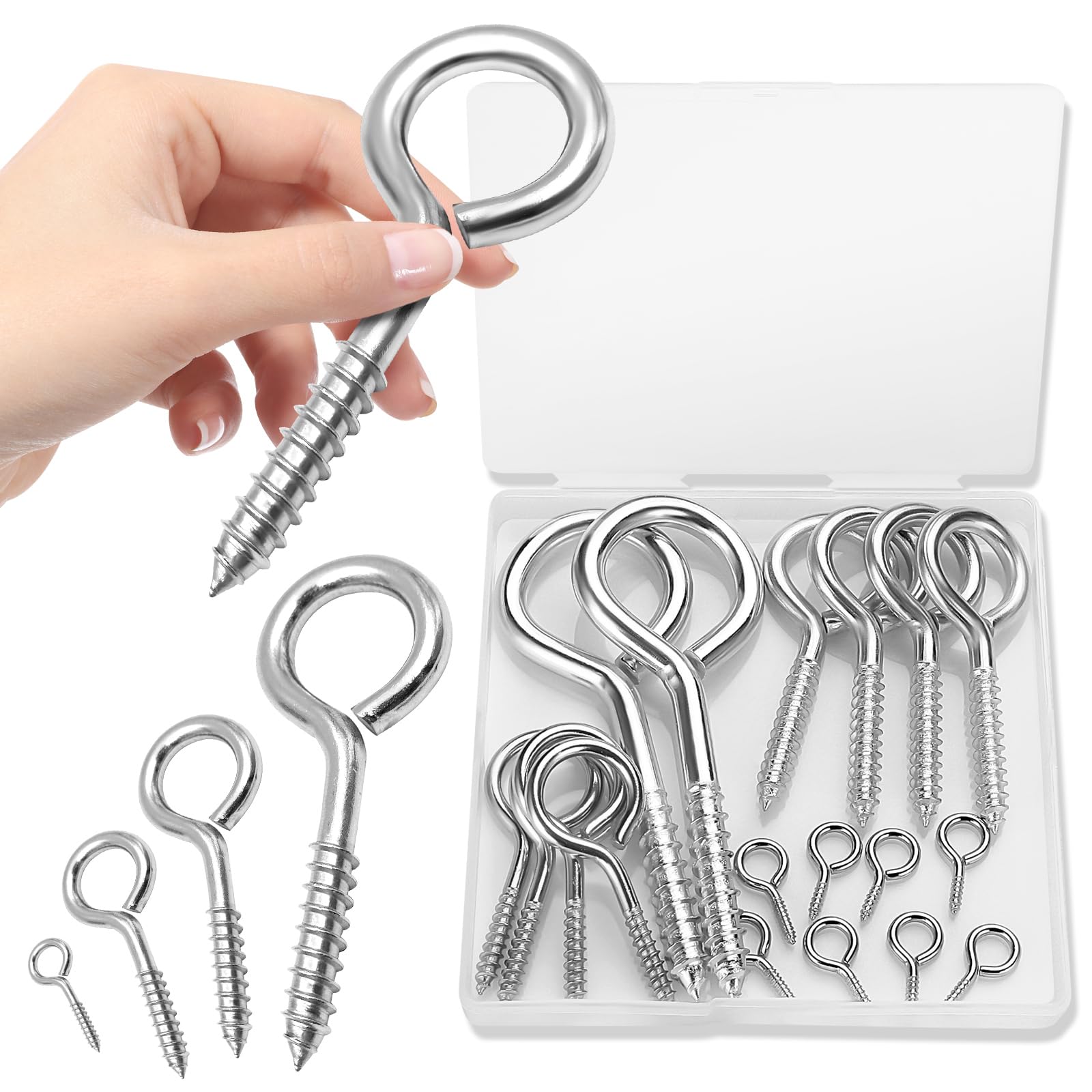 YGAOHF Tornillo de gancho para ojos, 18 piezas de perno de ojo resistente, pernos en I de varios tamaños atornillados, tornillos d