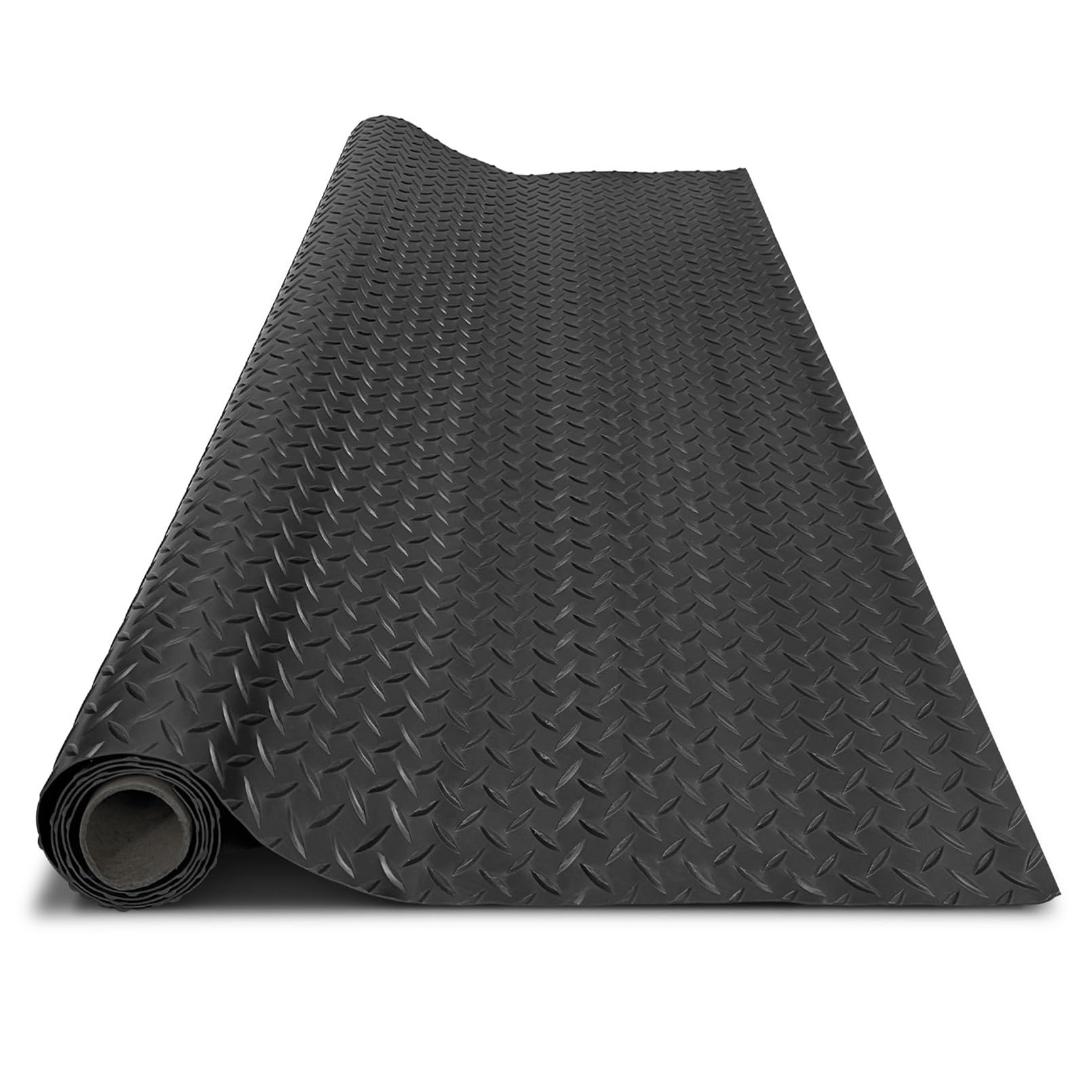 Tapete de garaje de 4 x 6 pies, rollo de suelo de 0.110 in de grosor, placa de diamante, alfombrilla de goma de PVC, alfombrilla a