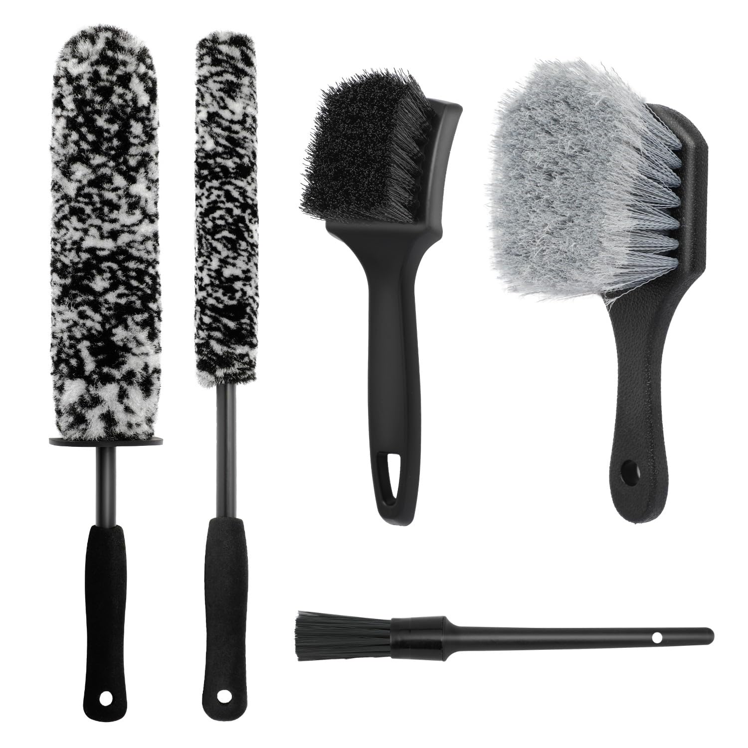 Juego de cepillos para llantas y neumáticos, cerdas suaves y rígidas, kit de suministros de limpieza para superficies exteriores d
