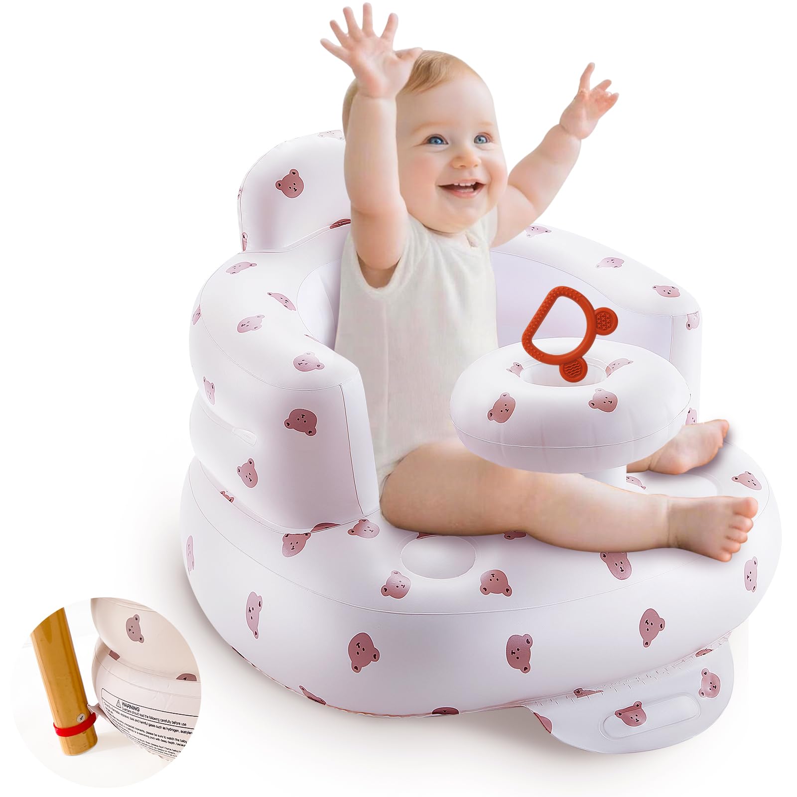JOSEN Asiento de bebé inflable para bebés de 3 meses en adelante, asientos de piso de bebé para aprender a sentarse, silla de duch