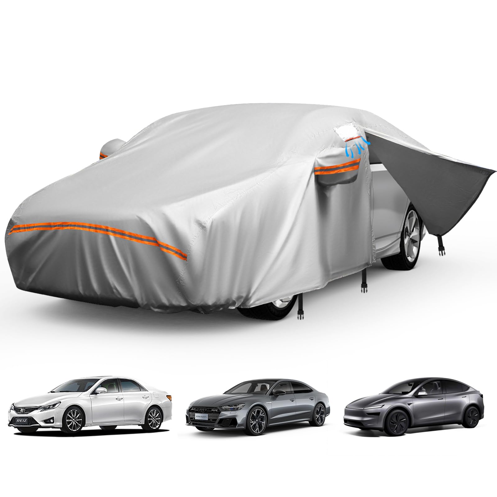 Funda impermeable de 8 capas para automóvil para todo tipo de clima, resistente al aire libre, con cremallera de puerta y forro de