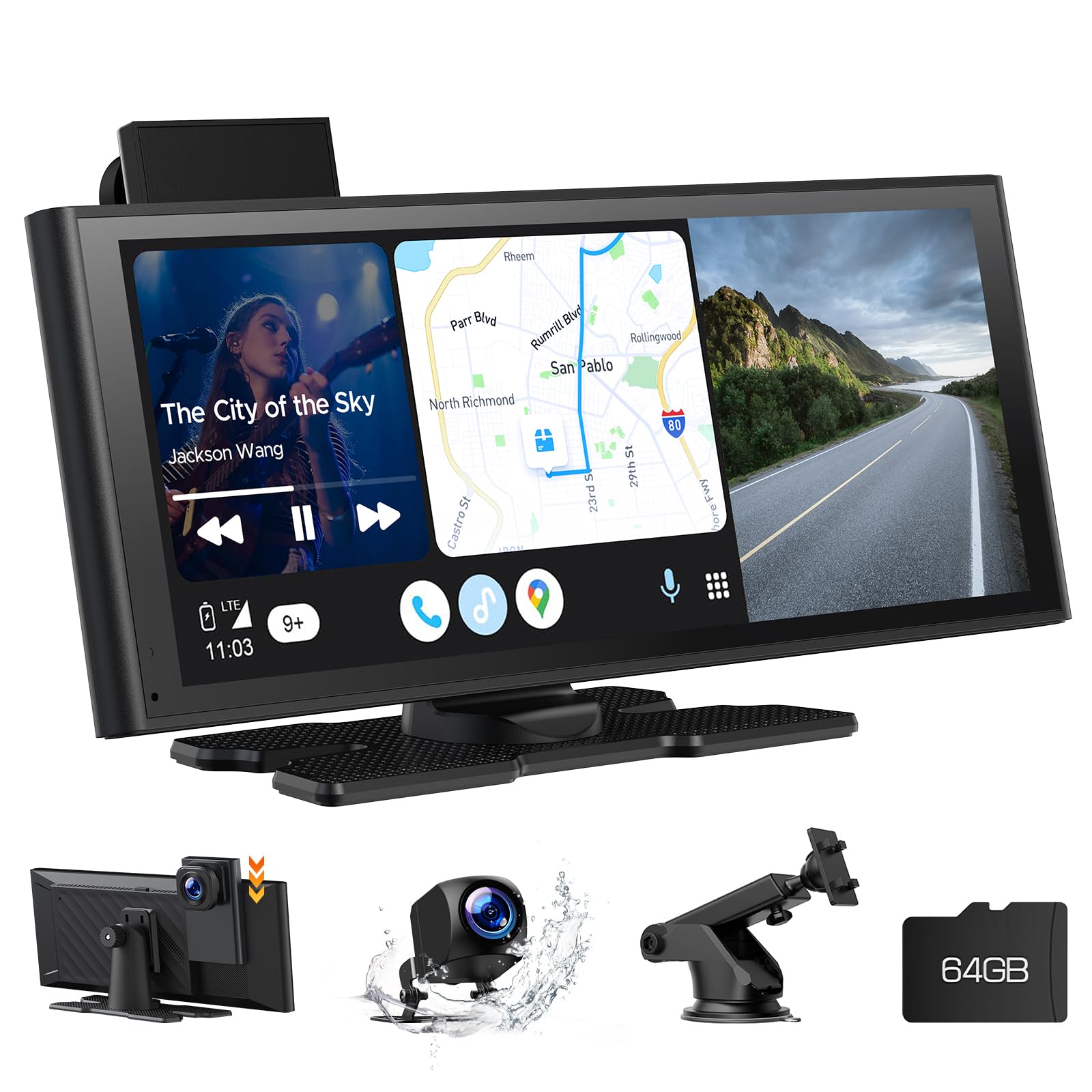 Pantalla Carplay portátil para coche – Carplay inalámbrico de 10.26 pulgadas y estéreo de coche Android Auto, con cámara de tabler