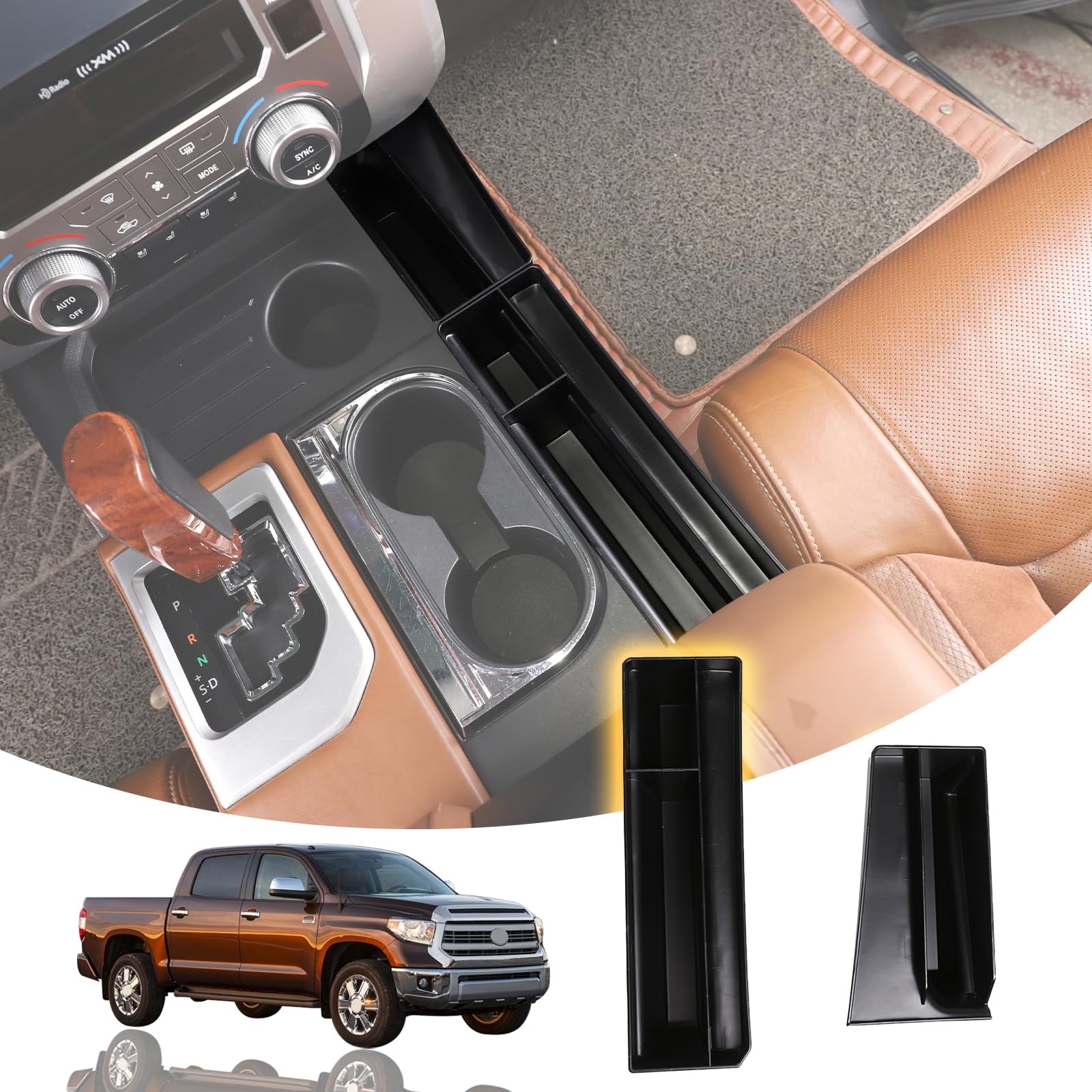 LLKUANG Organizador lateral de taza de agua central ABS para automóvil, caja de almacenamiento, bandeja para Toyota Tundra 2014-20
