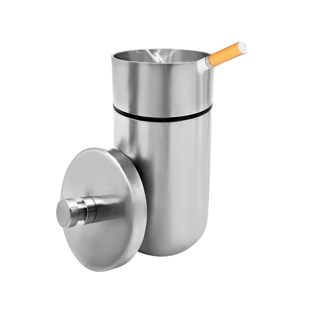 Cenicero de automóvil con tapa, resistente al viento, de acero inoxidable, sin humo, cenicero autoextinguido desmontable para port
