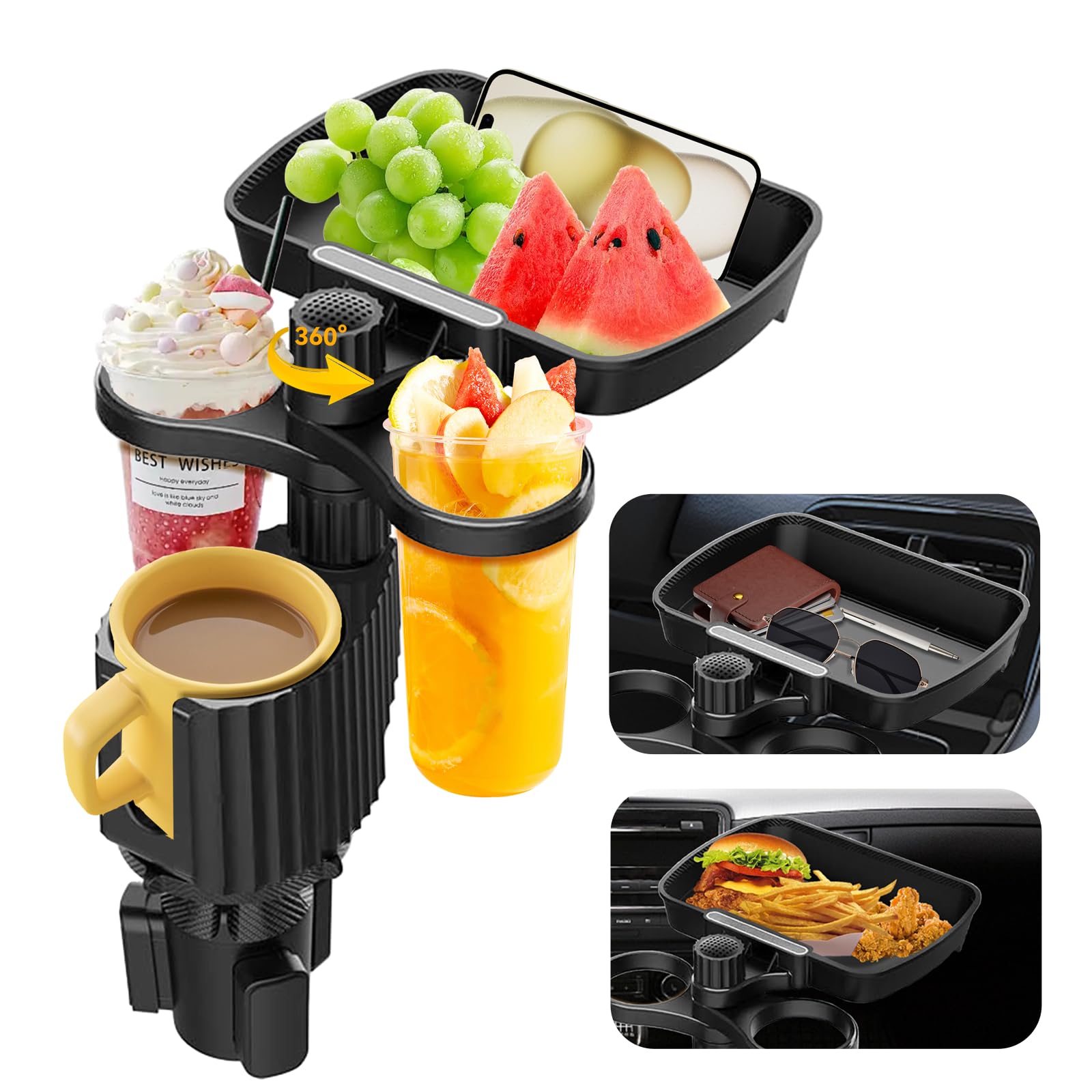 Generic Bandeja portavasos, 4 en 1, soporte desmontable para alimentos con base sólida, bandeja portátil para bebidas para vehícul