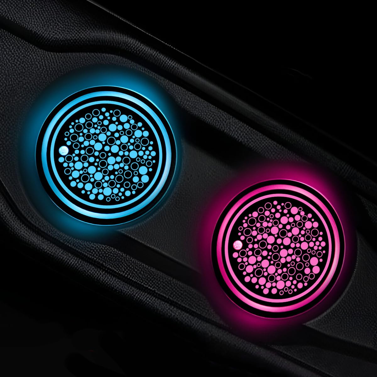 2 luces LED para portavasos de automóvil, 7 colores cambiantes, inserto de carga USB, posavasos para automóvil, decoración de lámp
