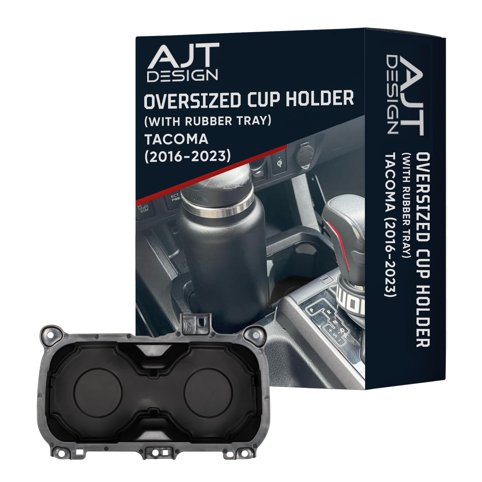 AJT DESIGN Portavasos de gran tamaño con bandeja compatible con Toyota Tacoma 2016-2023 | Se adapta a botellas de 3.65 pulgadas |