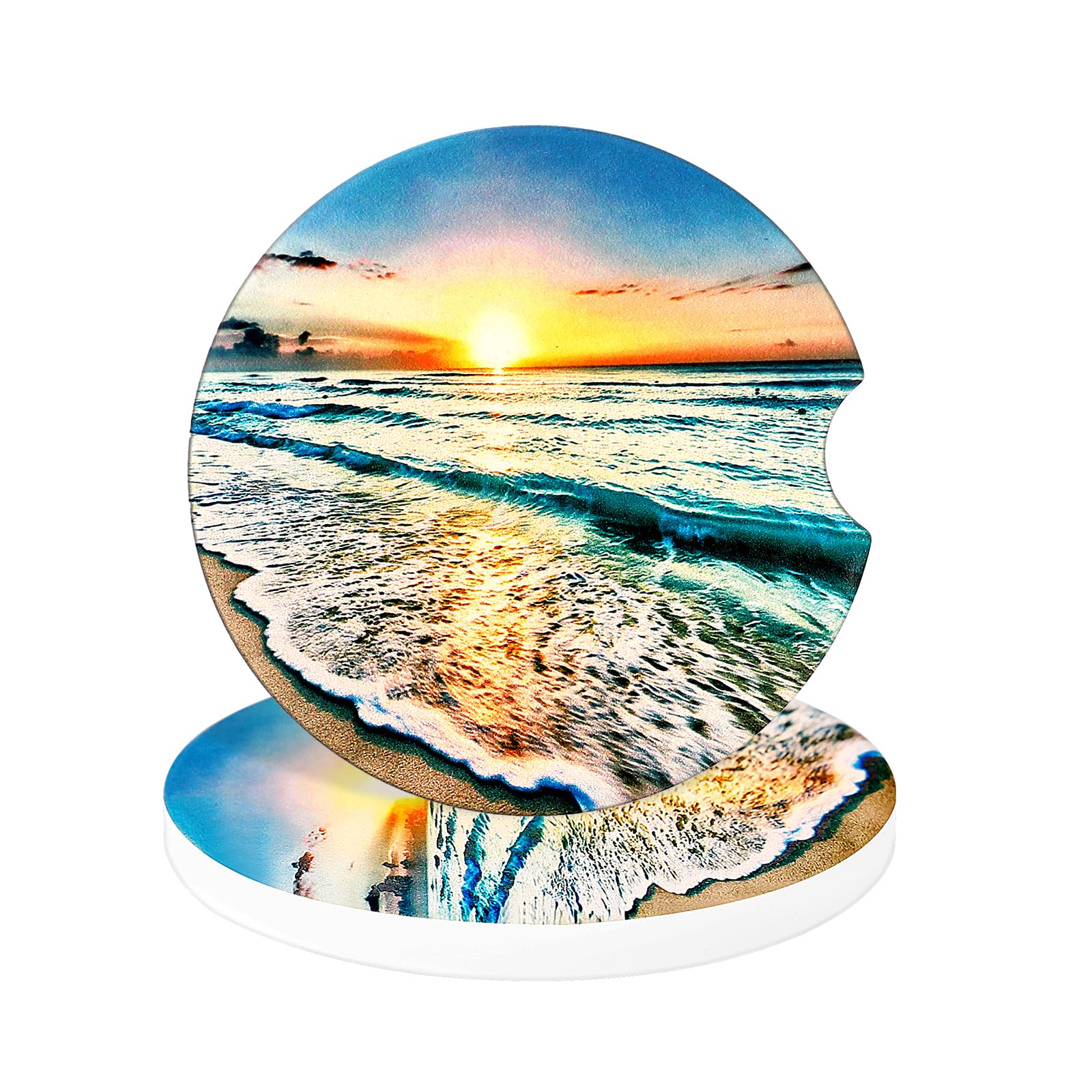 Jeffdad Portavasos para automóvil, paquete de 2 posavasos de cerámica absorbente de 2.56 pulgadas, piedra de cerámica universal y