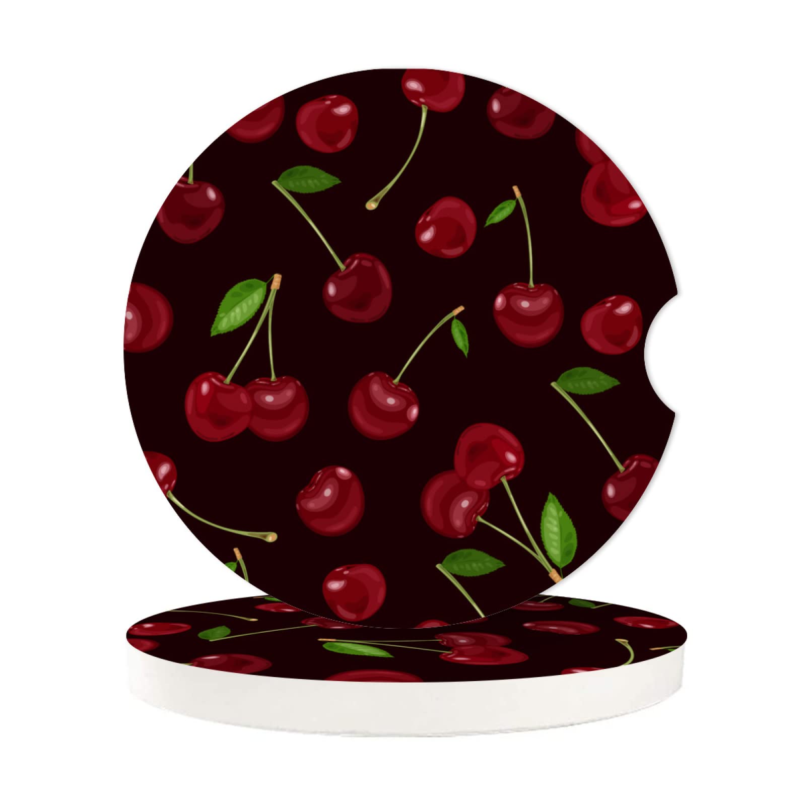 Posavasos absorbentes de cereza roja para automóvil, portavasos de copa con base de corcho con muesca para el dedo para un fácil m