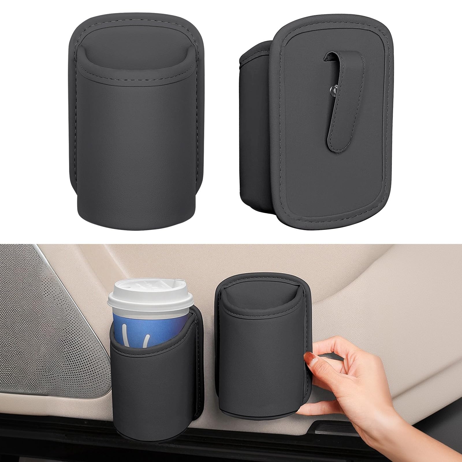 Portavasos para coche de cuero grande botella de agua bebida café portavasos bolsa puertas ventana almacenamiento respaldo 2 unida