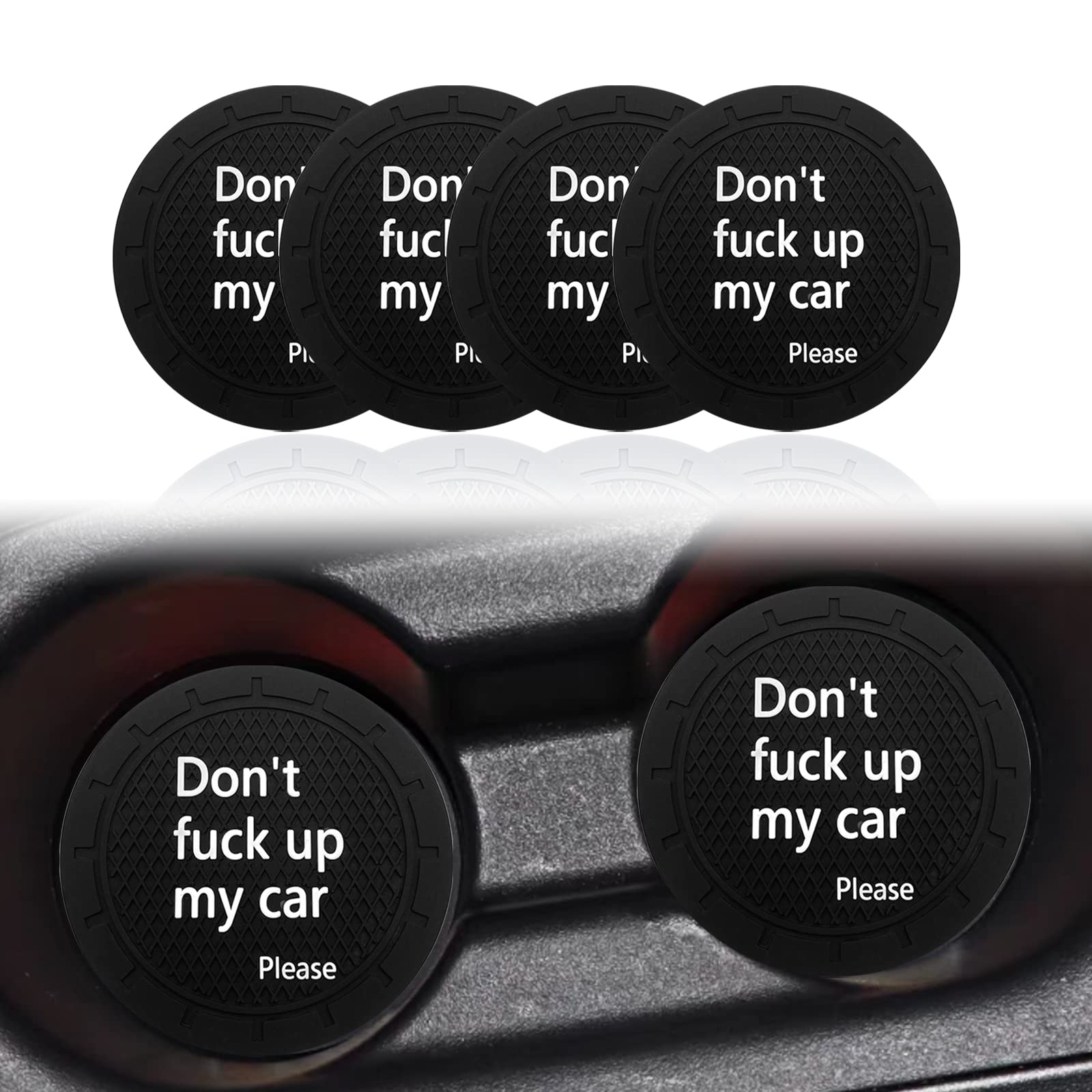 4 posavasos para automóvil, Don’t Fuck Up My Car Please, soporte antideslizante para tazas decorativo divertido, adecuado para la