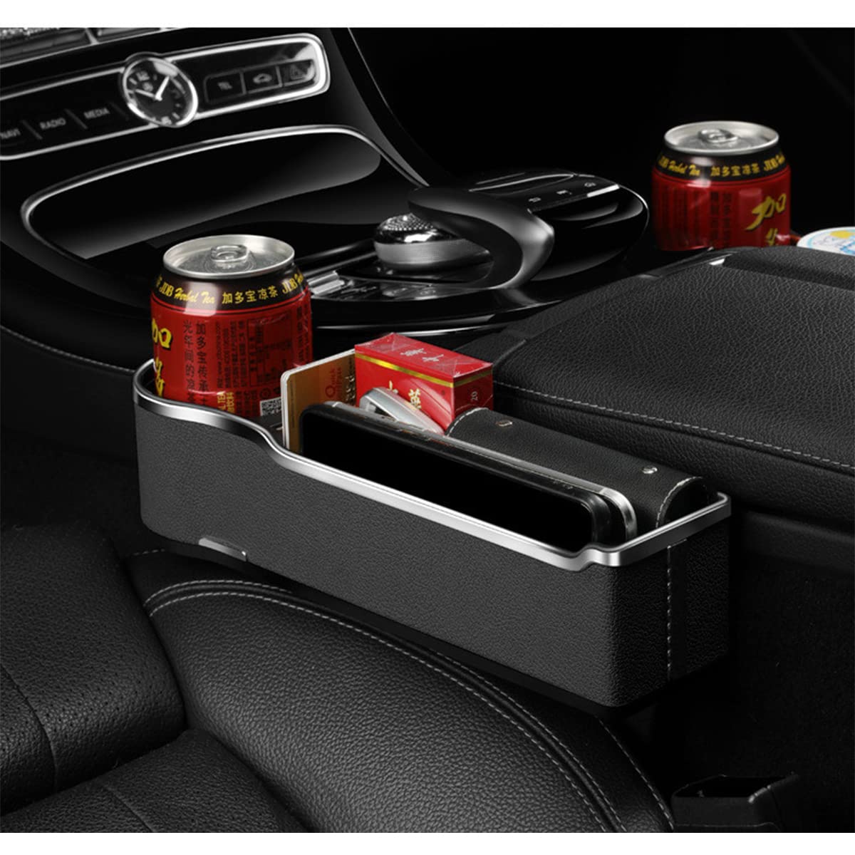 DEEYOTA Organizador de espacio para asiento de automóvil con portavasos y 2 puertos USB, organizador de caja de almacenamiento lat