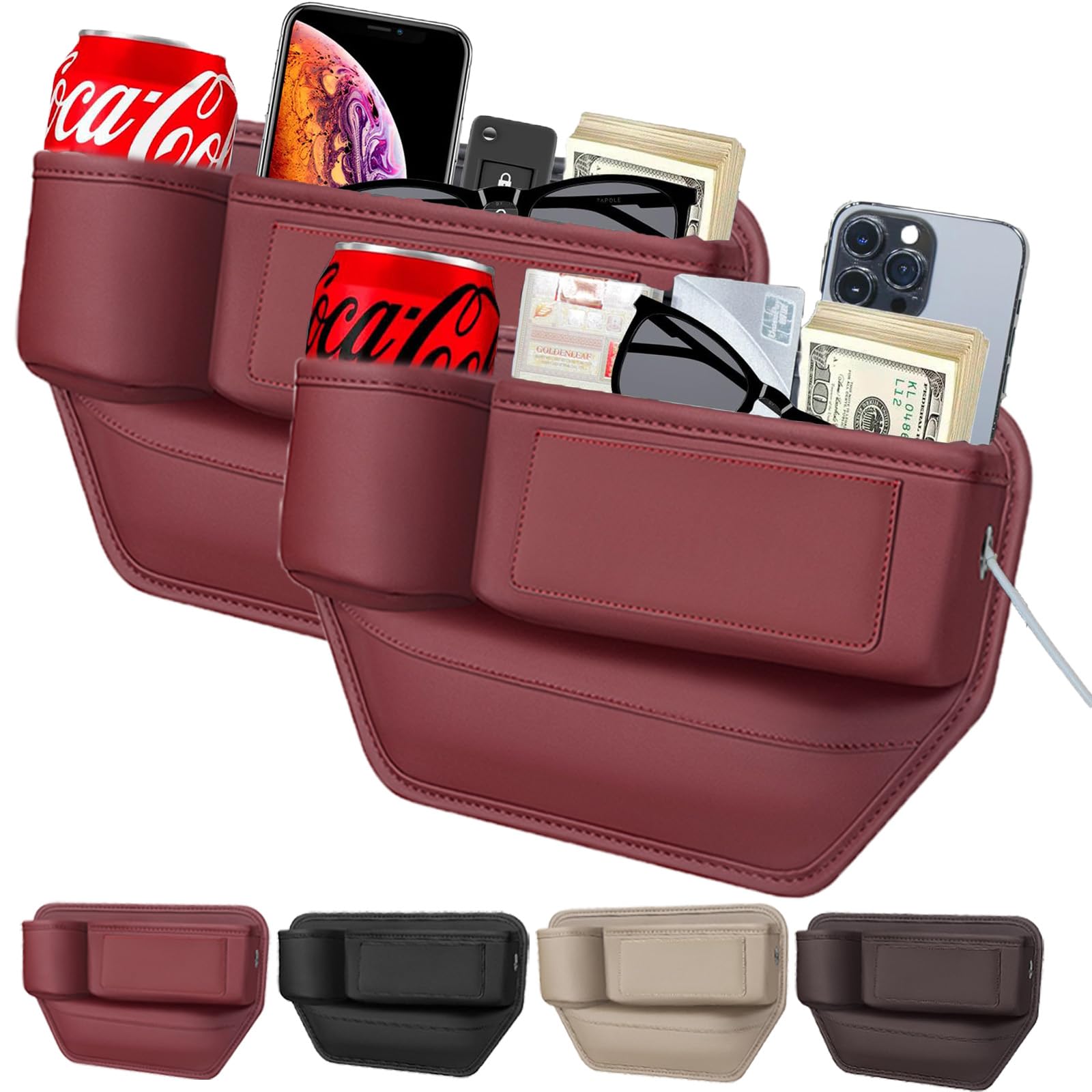Paquete de 2 rellenos de cuero para asiento de automóvil con soporte para tazas, bolsa de cuero para portavasos de automóvil, ajus