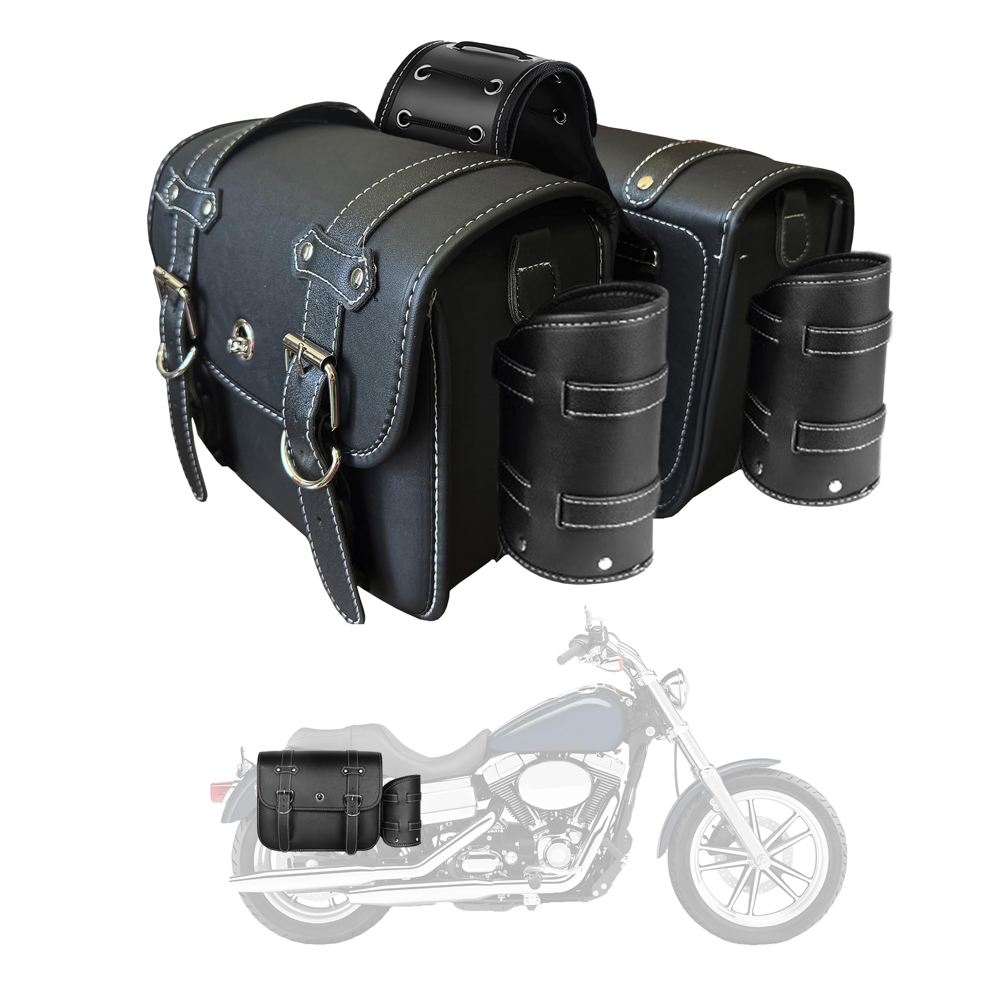 KEMIMOTO Alforjas de cuero para motocicleta, con portavasos para motocicleta, Softail Dyna, Sportster, Road King, Rebel V-star Sha