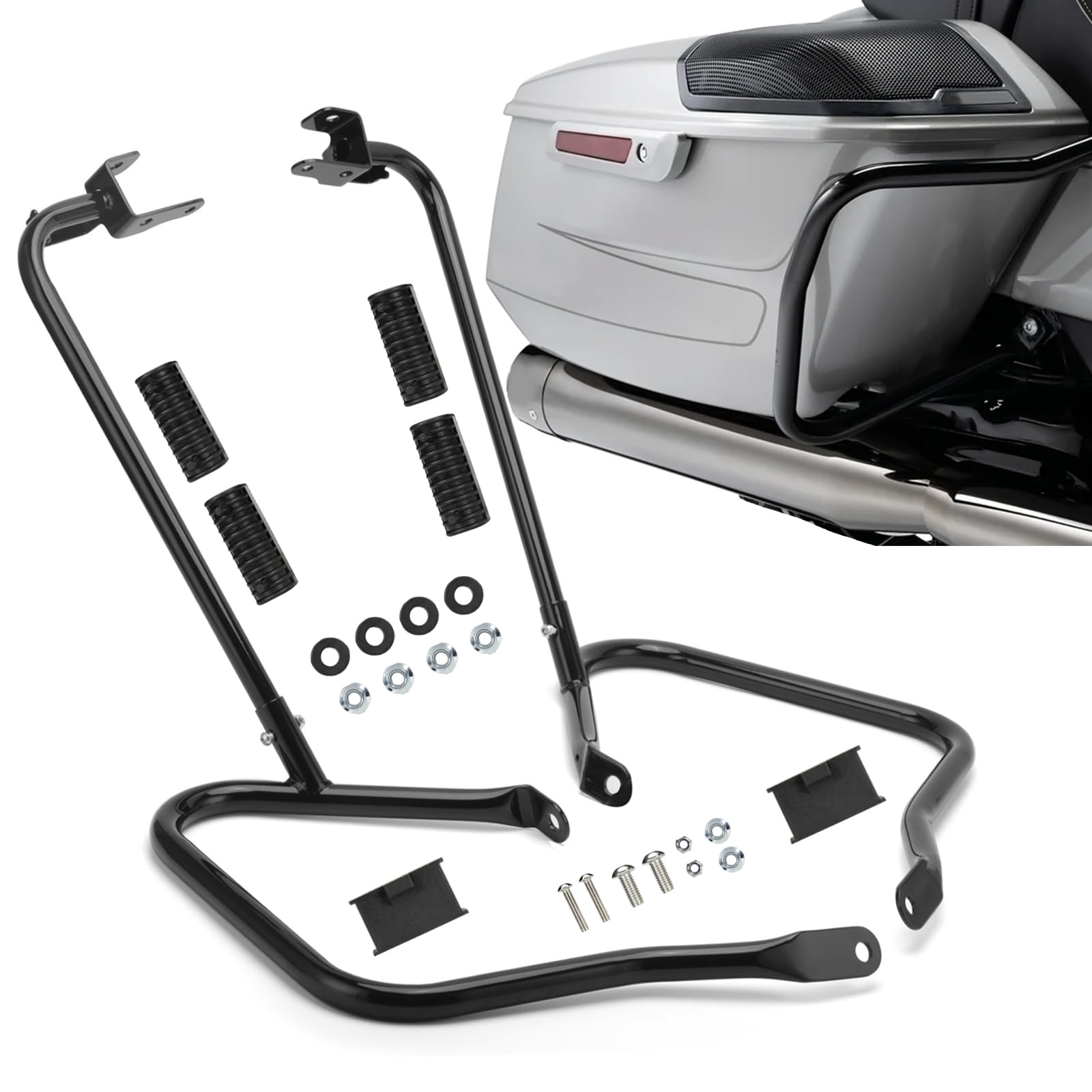 Kit completo de protectores de alforja trasera negra brillante para Harley Touring Street Road Glide Electra Glide Road King 2014-