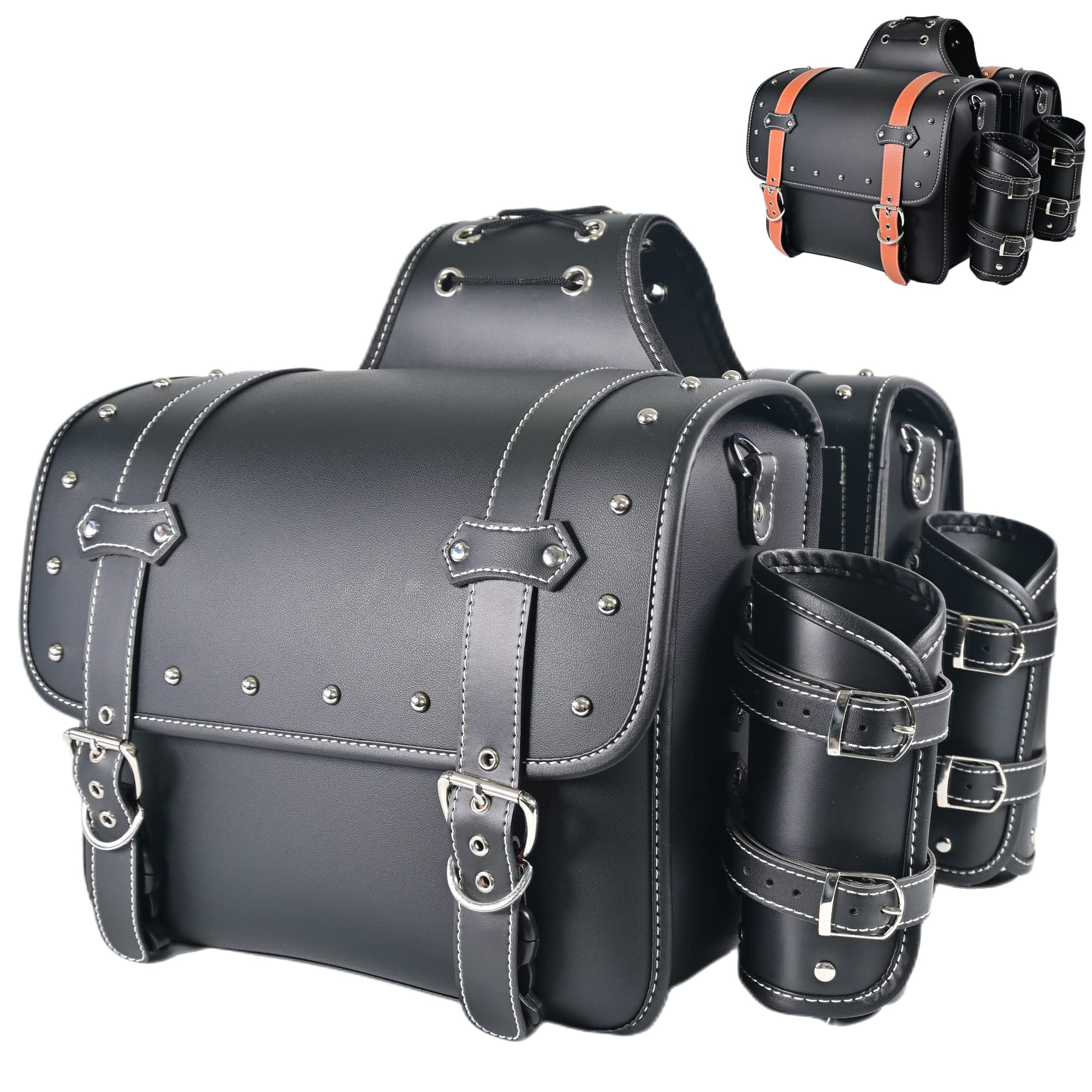 Alforjas de motocicleta|Bolsas de sillín | Bolsas de herramientas laterales de cuero sintético de PVC con portavasos|Bolsa de herr