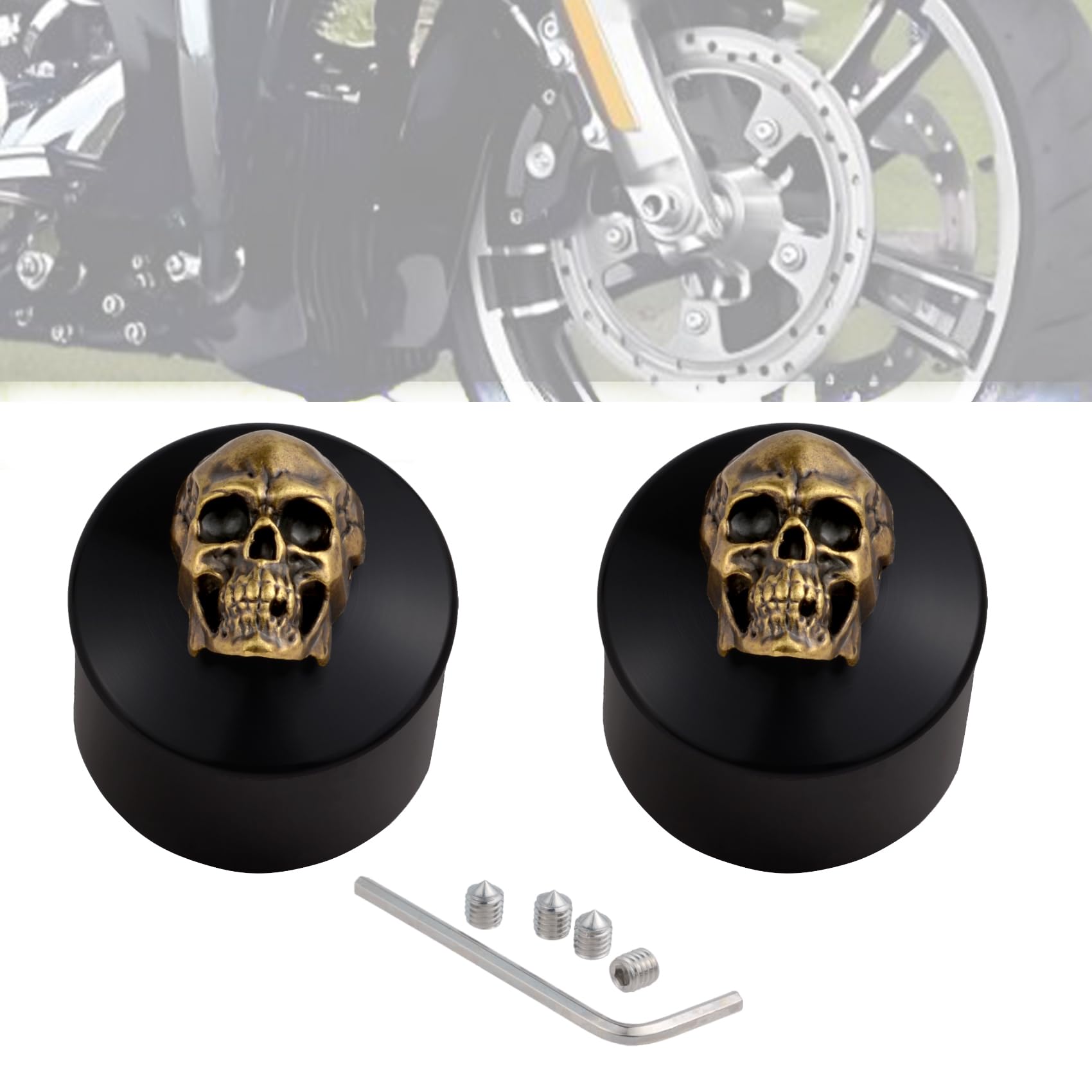 Lunsom Cubiertas de tuerca de eje de motocicleta de aleación, tapa de tuerca de eje delantero con forma de calavera para motocicle