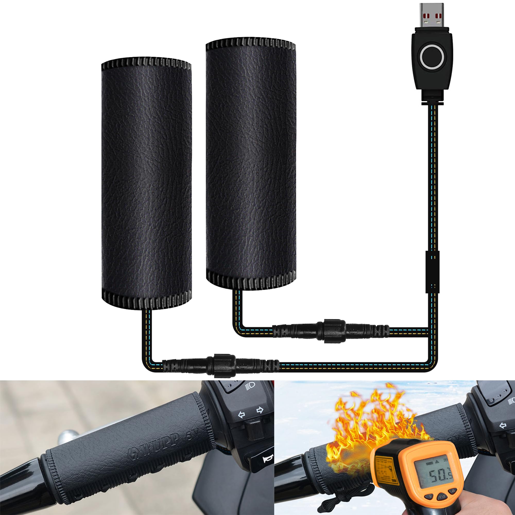 Fundas de agarre con calefacción USB para motocicleta, manillar de calefacción de 5 V, compatible con Harley Davidson, 3 ajustes d