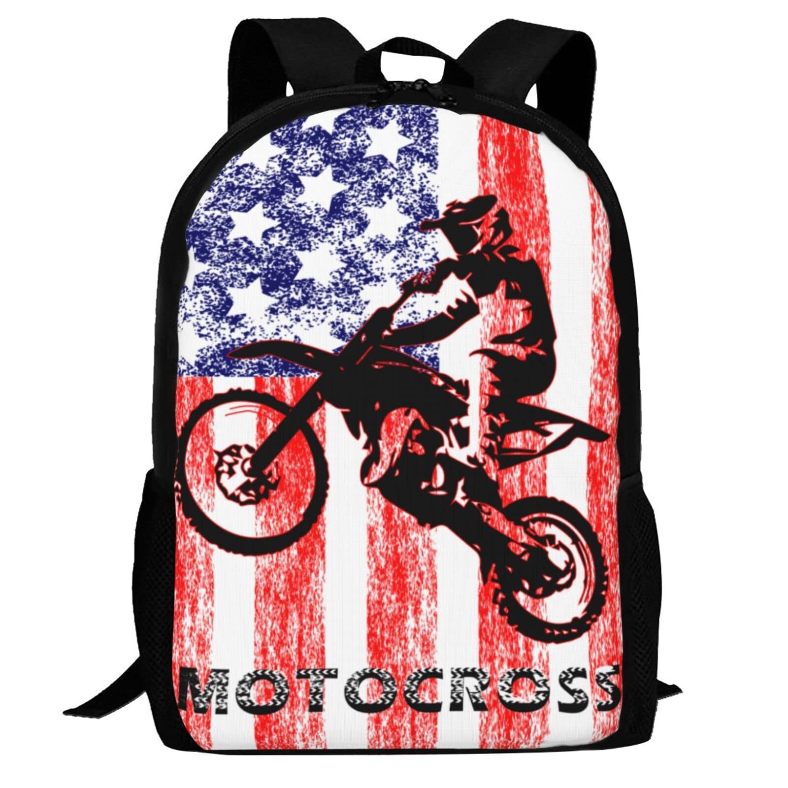 Mochila escolar unisex con bandera estadounidense para motocicleta, mochila escolar para exteriores, casual, para usar en los homb