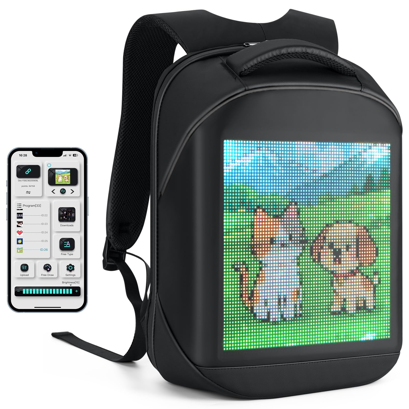 Mochila LED con pantalla programable, mochila para portátil de 16 pulgadas, bolsa led impermeable, viaje, mochila de motocicleta