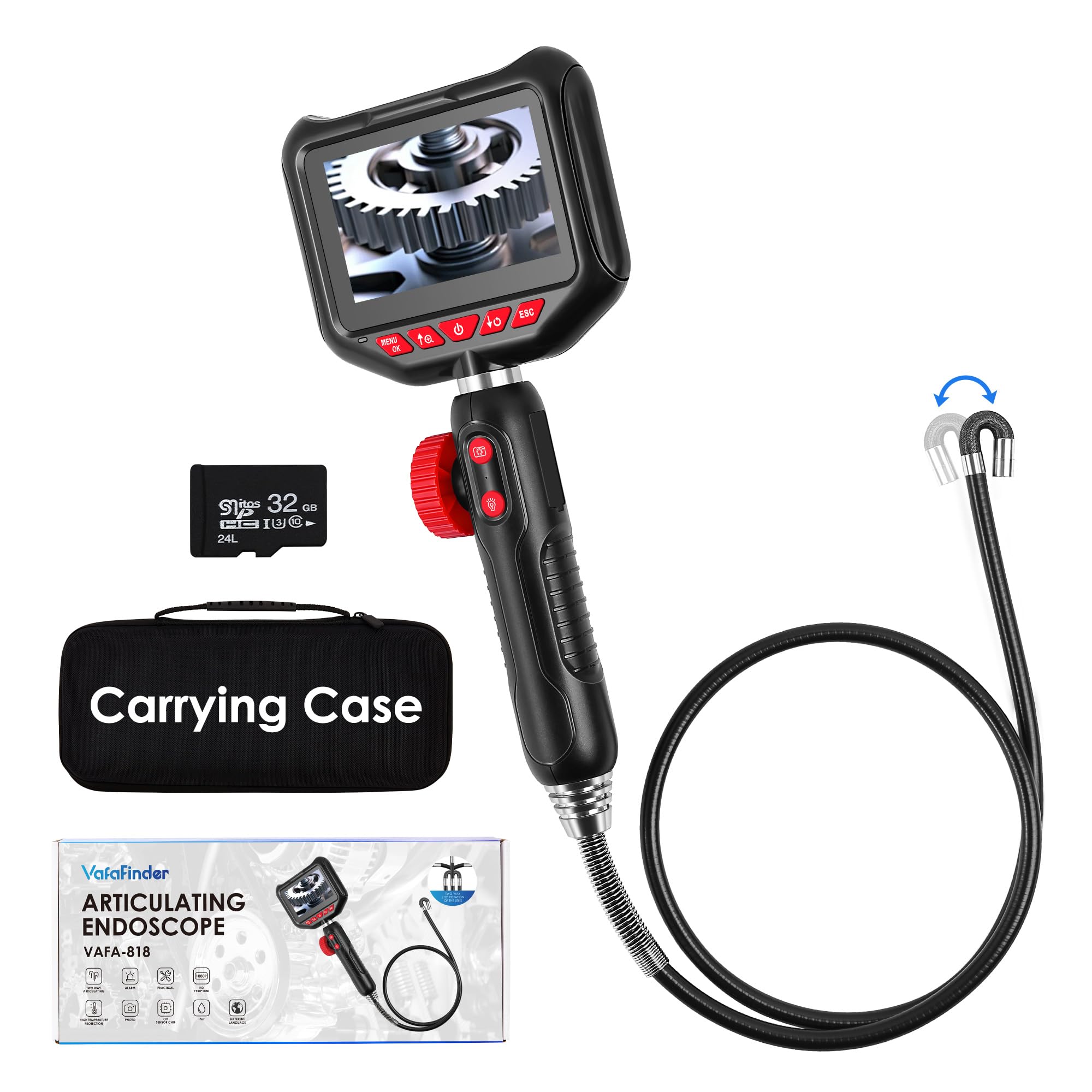 Cámara articulada de boroscopio con luz – Endoscopio bidireccional con 8 luces LED ajustables | Pantalla LCD de 5 pulgadas | Cámar