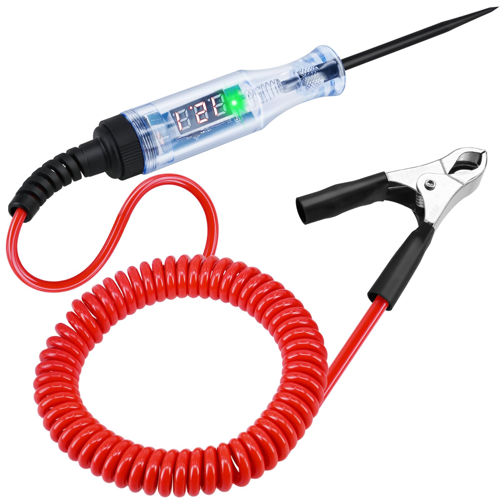 Probador de luz de prueba automotriz de 5 a 90 V digital con pantalla de voltaje, cable de resorte extendido y sonda de acero inox