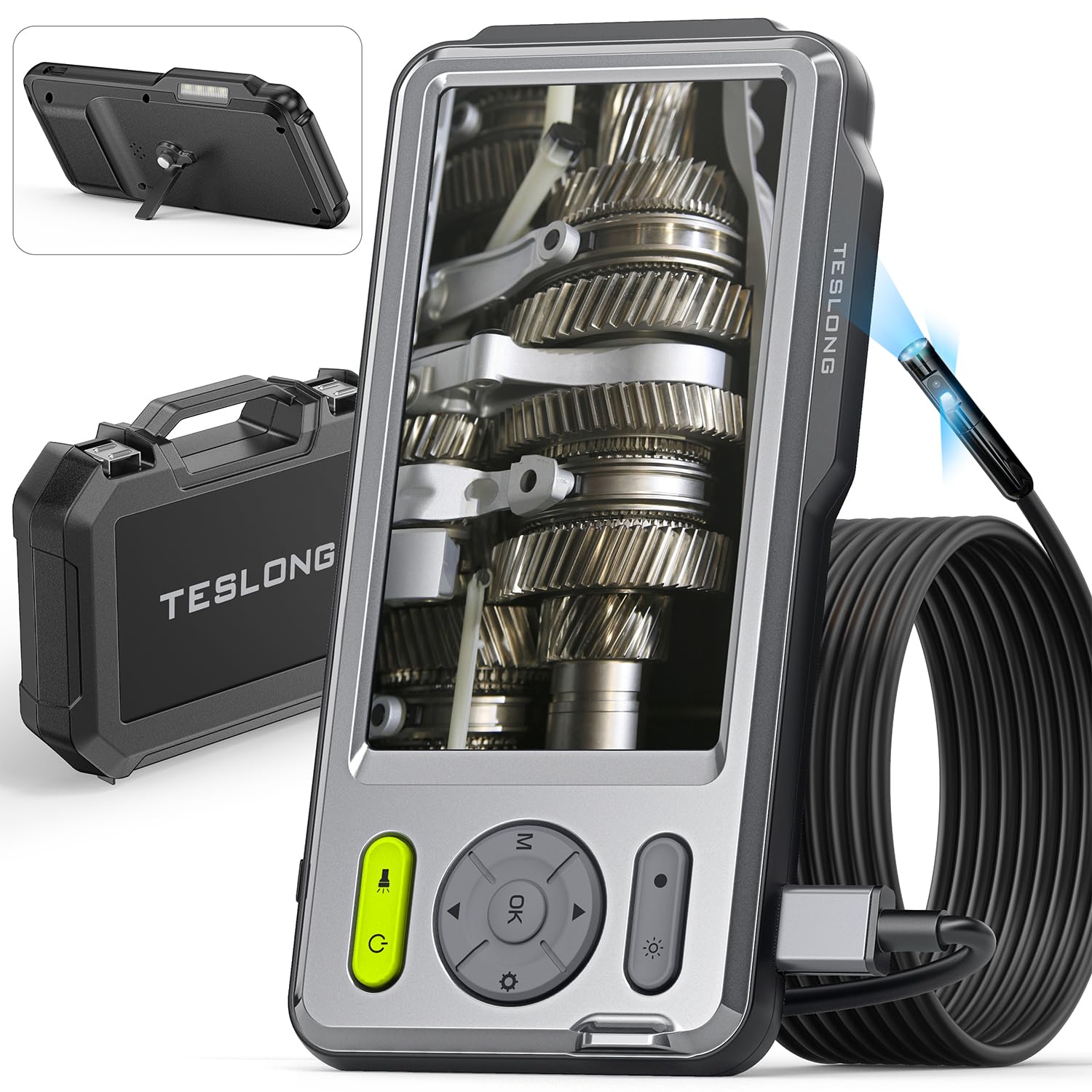 Cámara de inspección de triple lente, boroscopio Teslong con luz LED, endoscopio industrial HD, pantalla IPS de 5 pulgadas, cámara