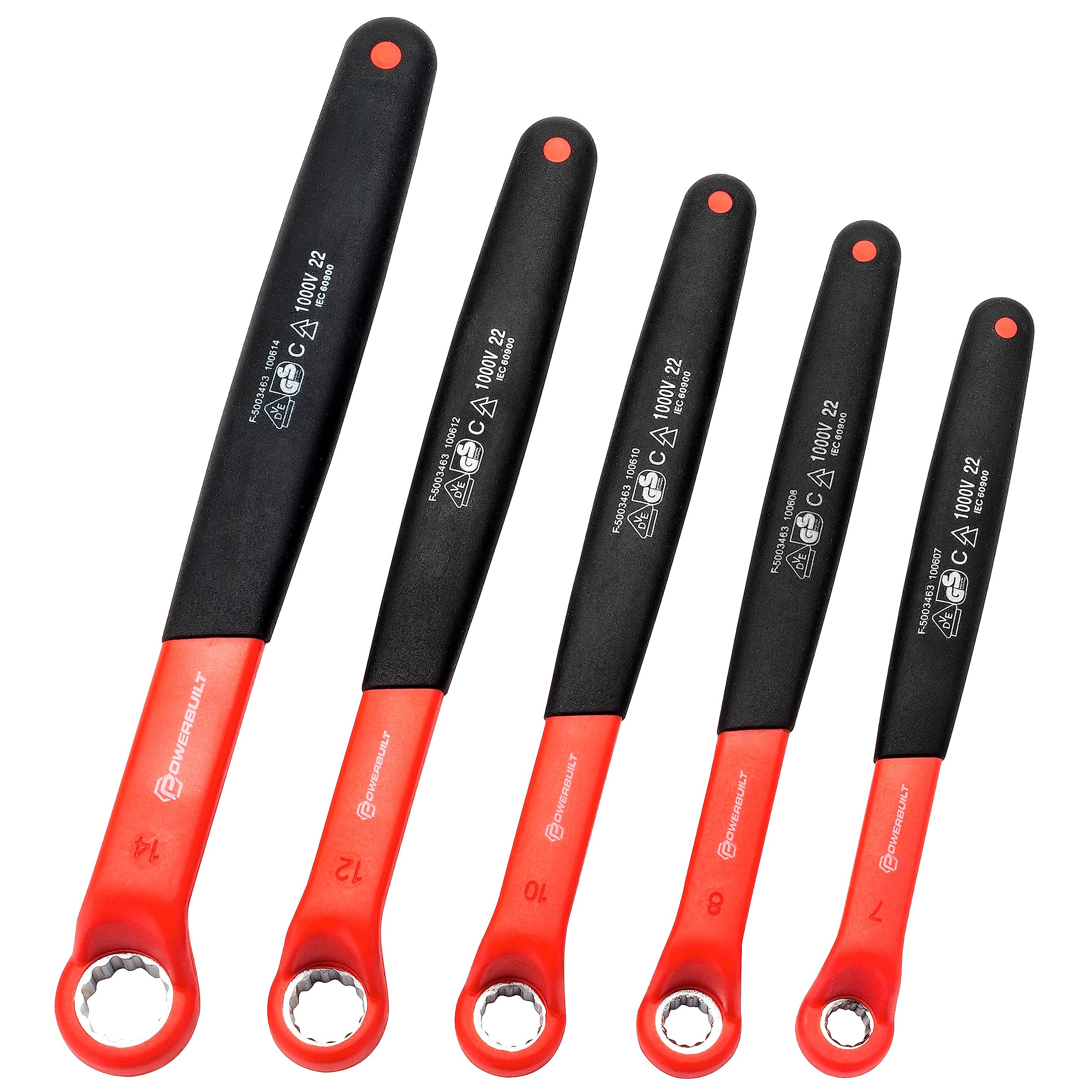 Powerbuilt Juego de llaves VDE con aislamiento de extremo de caja de 5 piezas, clasificadas para 1000 V, tamaños de 0.276 in a 0.5