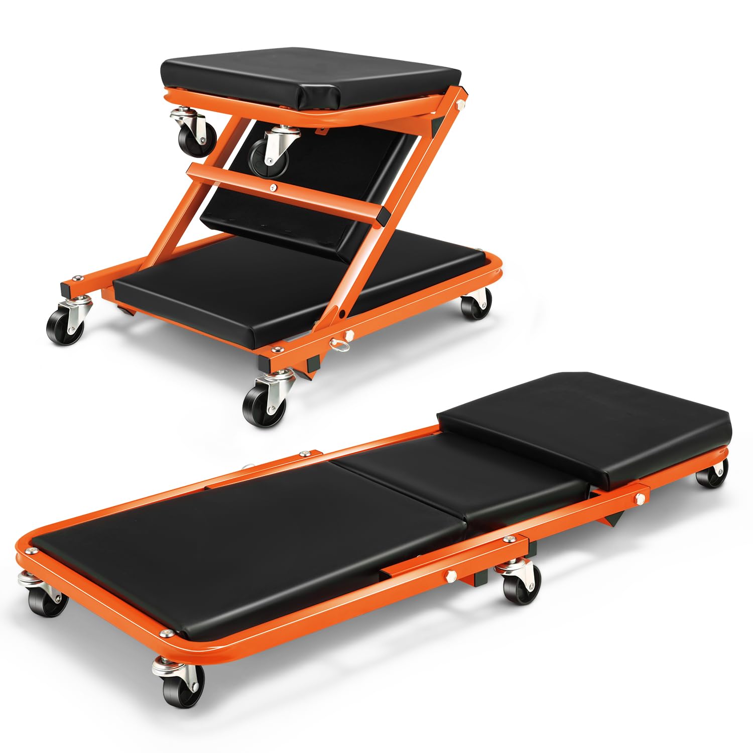 DNA MOTORING 36 pulgadas 2 en 1 rodante plegable enredadera/asiento, 6 ruedas de 2 pulgadas, capacidad de peso de 330.7 lbs, naran