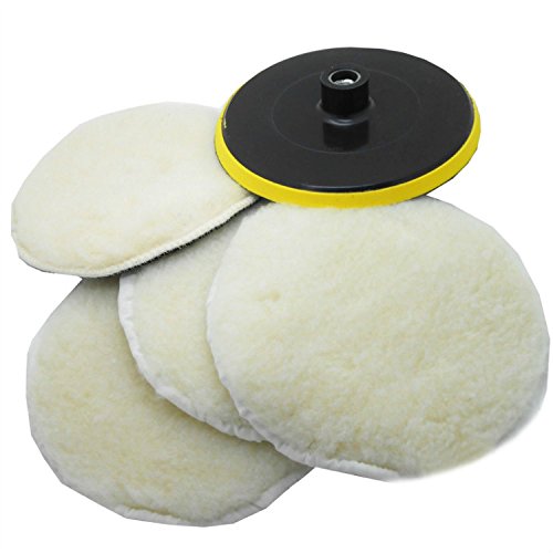 SPTA Almohadilla de pulido de lana, 5 unidades de 3 pulgadas (2.953 in), almohadilla de pulido de lana 100% natural con 1 almohadi