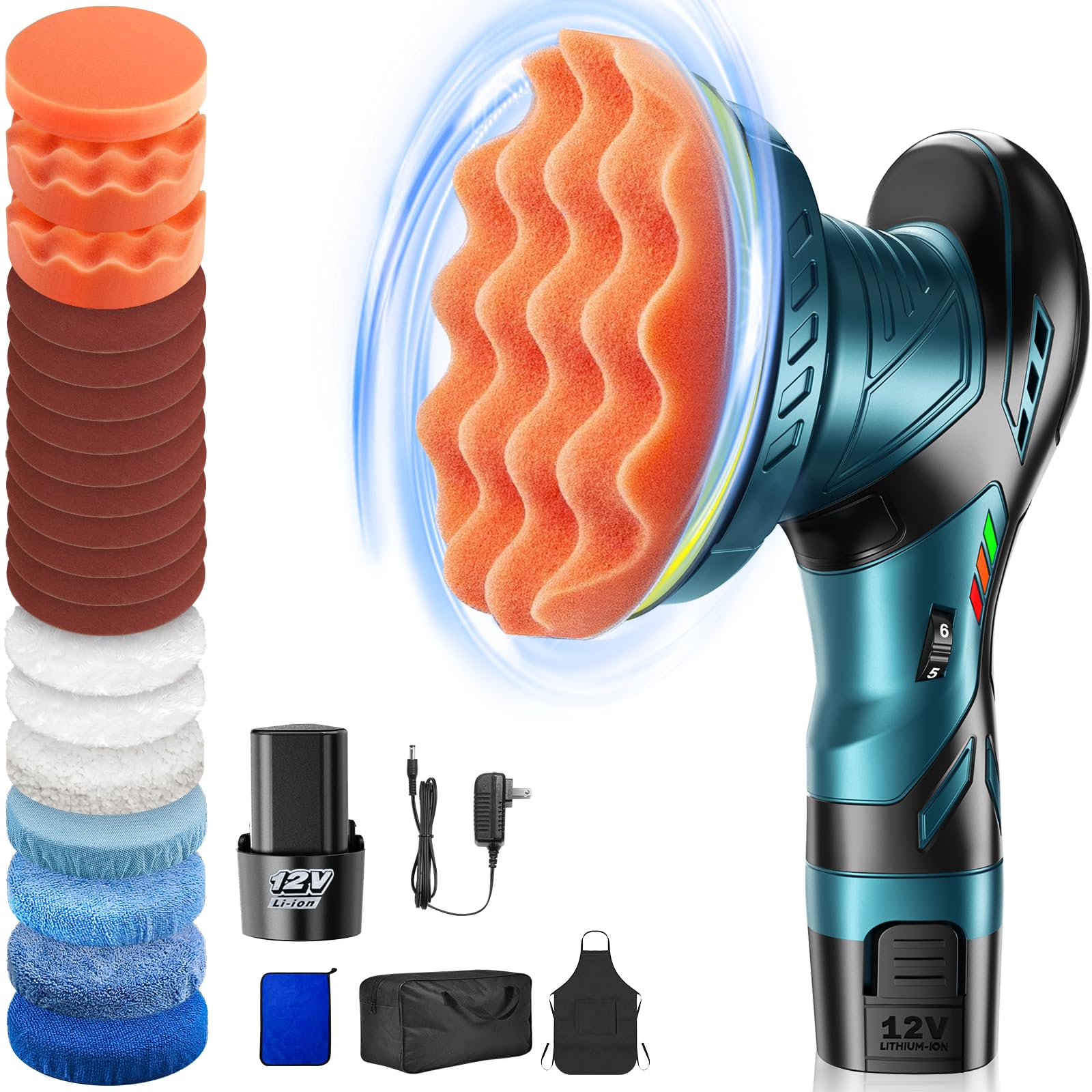 Kit de pulidor inalámbrico para automóvil, máquina de cera pulidora aleatoria de doble acción de 6 pulgadas para detalles de autom