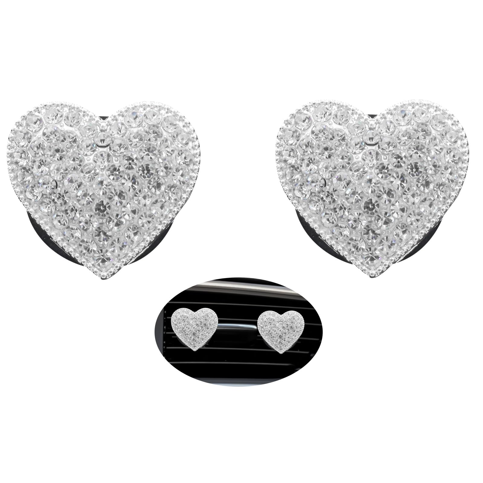 Clips de ventilación de coche con forma de corazón plateado, 2 piezas de diamantes de imitación de corazón femenino, accesorios de