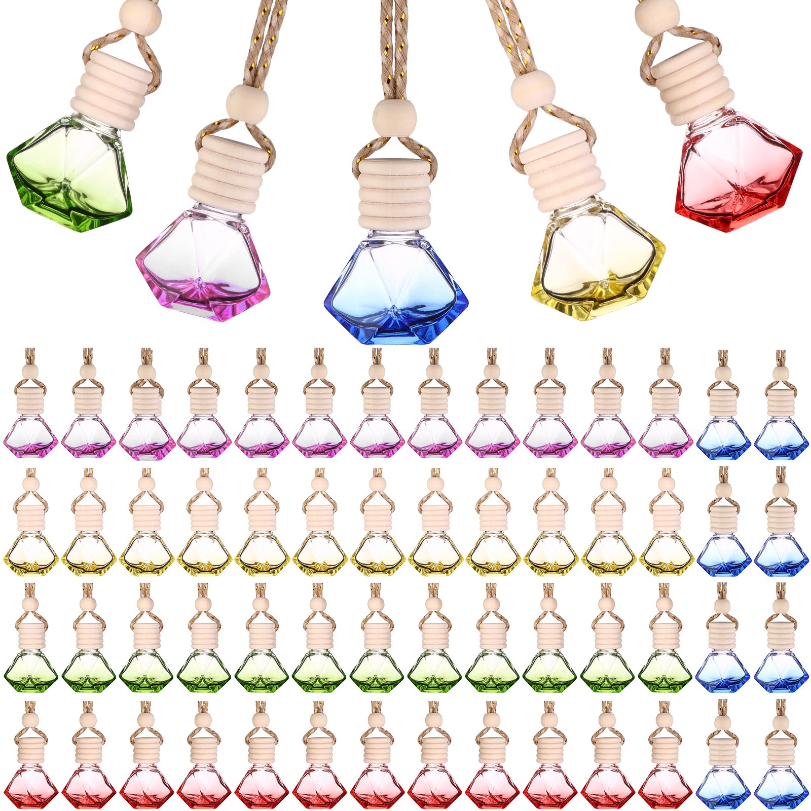 60 unidades de 0.3 fl oz colgante de ambientador de aire para coche, difusor de vidrio de color vacío, difusor esencial de aceite,