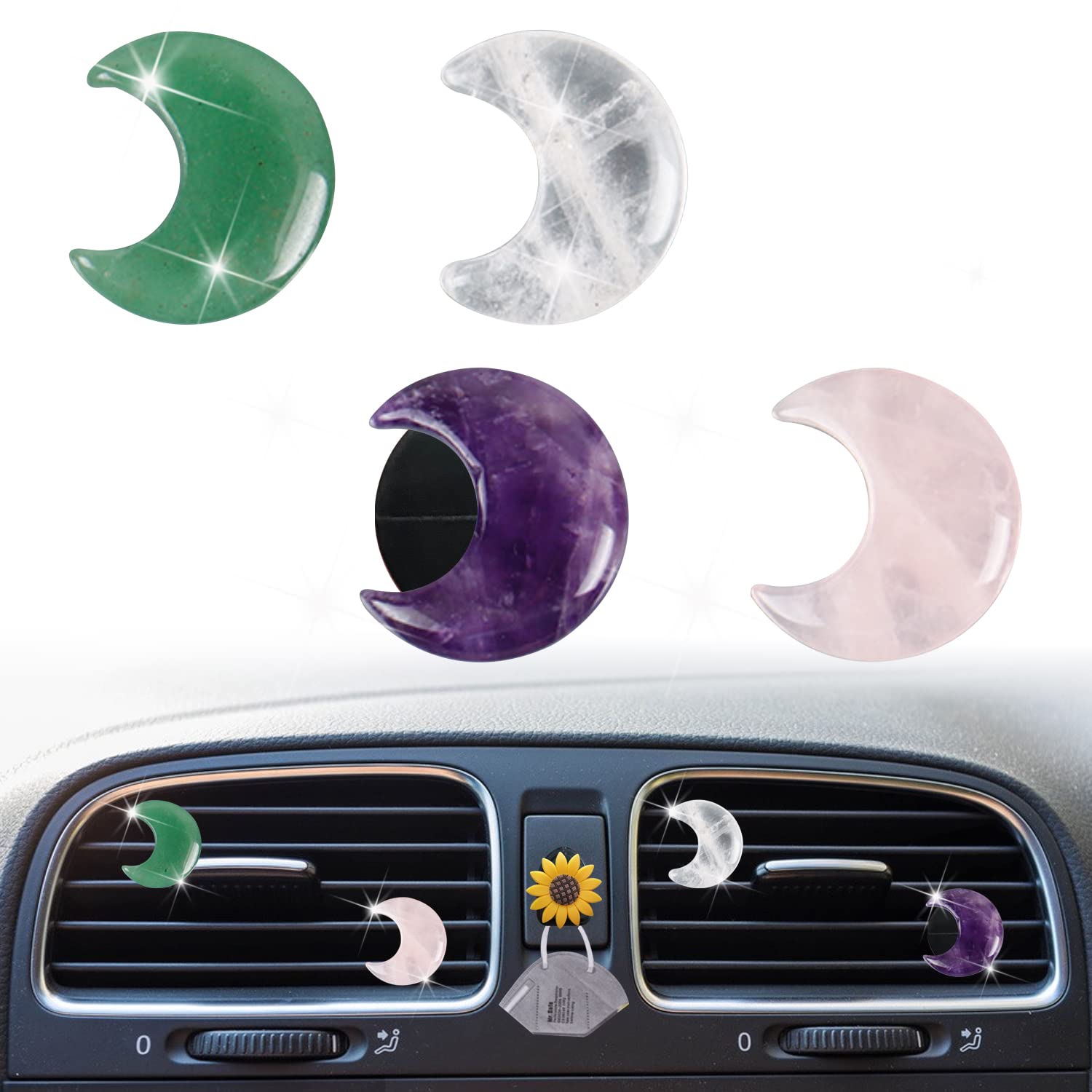 Crystal Moon – Clips de ventilación de aire, 4 ambientadores de coche estilo luna de cuarzo, bonita decoración de automóvil y acce