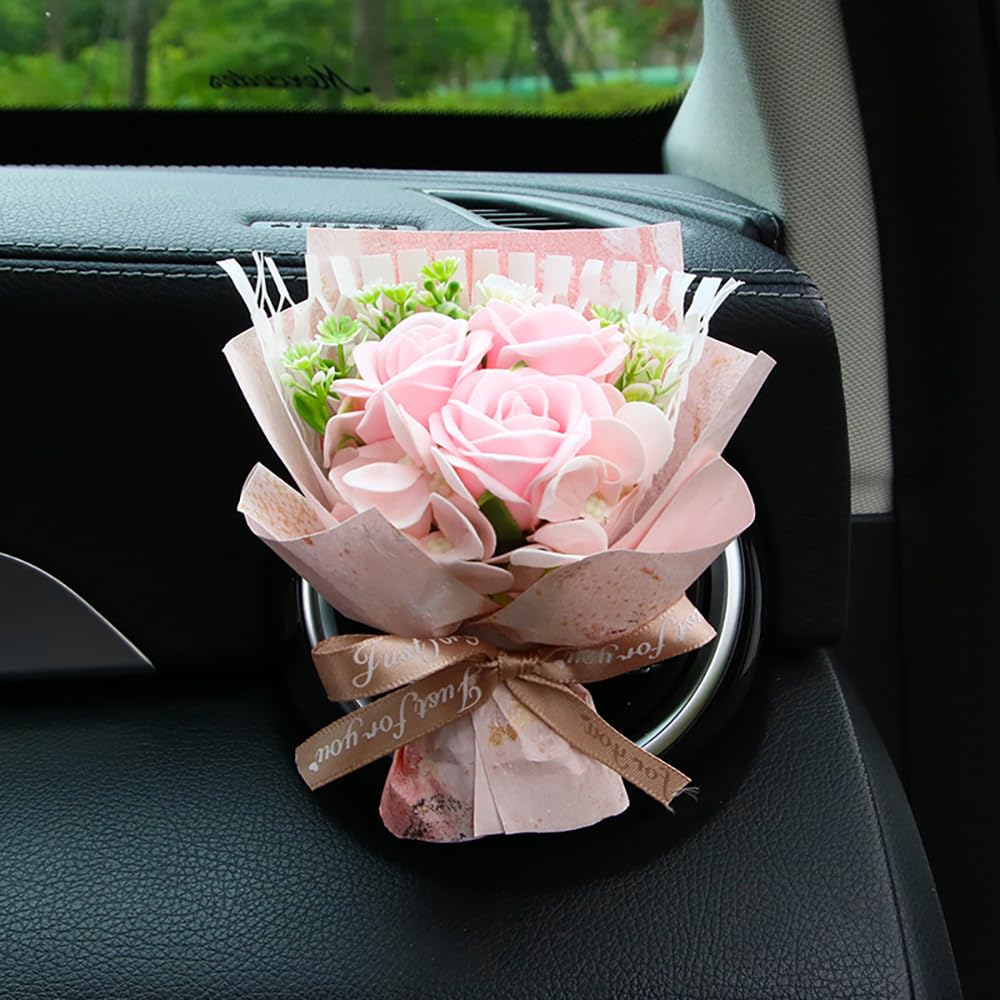 Mini ramo de rosas decorativo con difusor de fragancia para tablero de ventilación de automóvil, accesorios de decoración interior