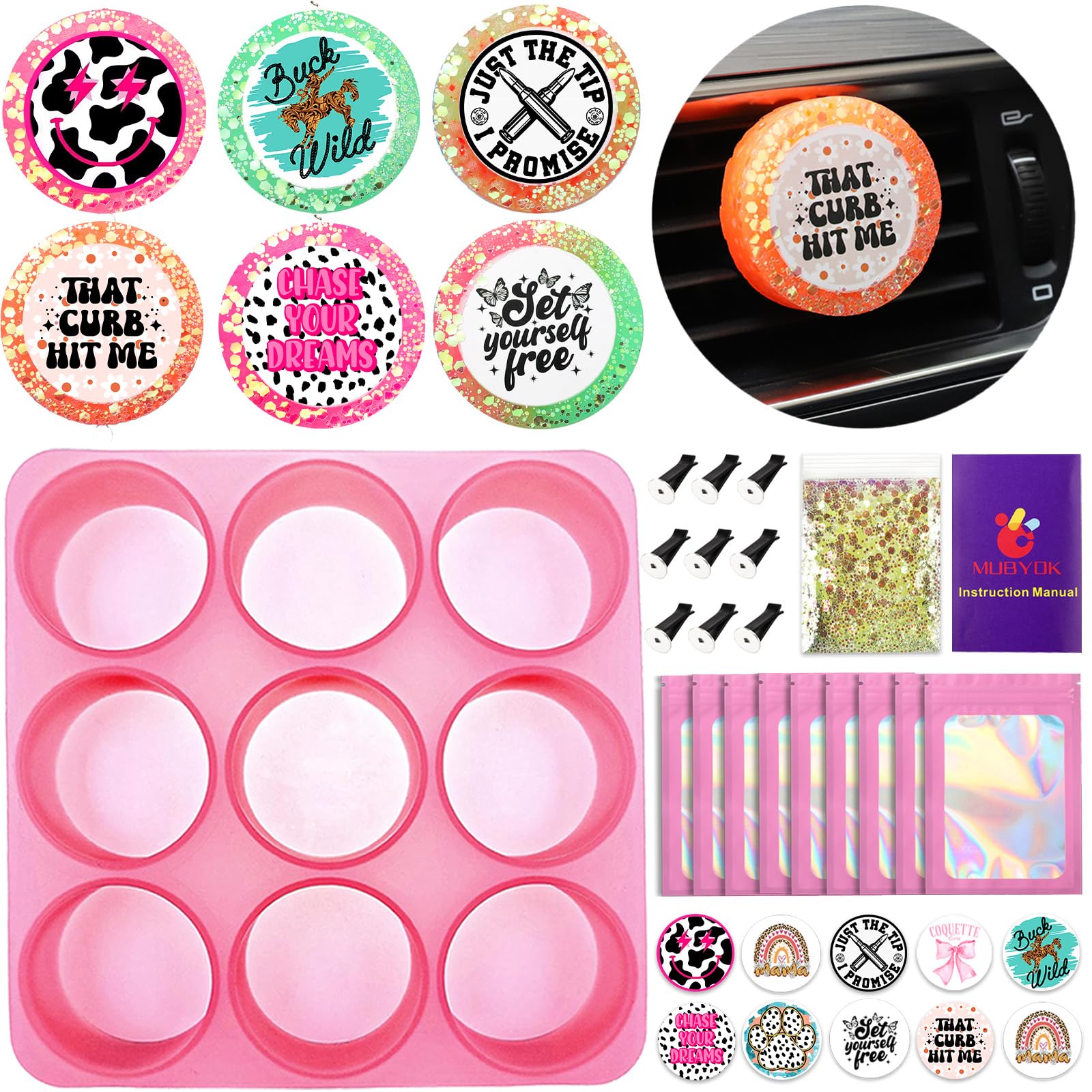 MUBYOK Kit de iniciación de suministros para ventilación de automóvil, 9 ambientadores de aire para automóvil con moldes de silico