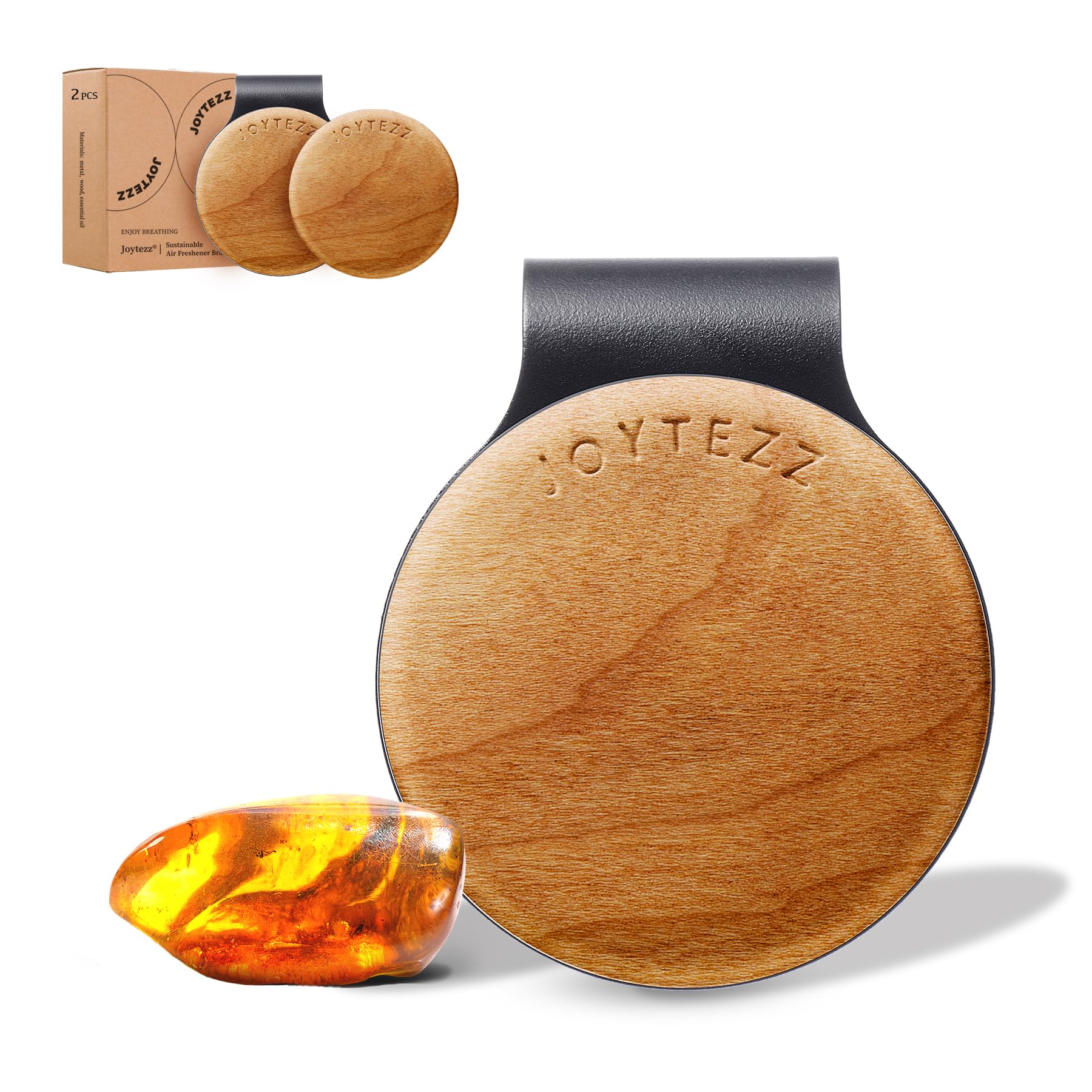 Ambientador de coche – 90 días de larga duración con 2 recambios – Kit de difusor de aire de madera ámbar para coche, visera autom