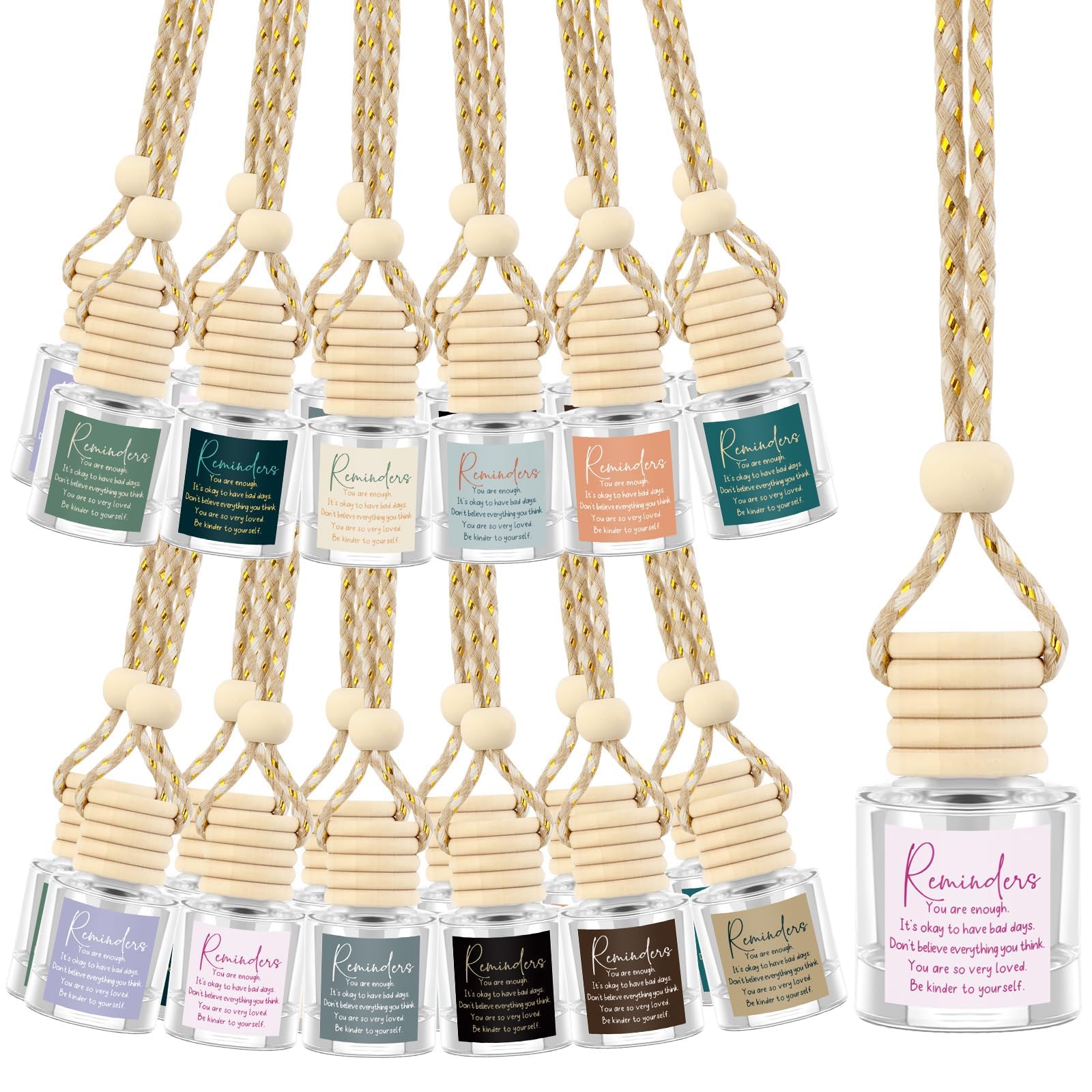 Boao 25 juegos de botellas difusoras de ambientador de coche colgantes vacías a granel con difusor de automóvil, tarjetas de instr