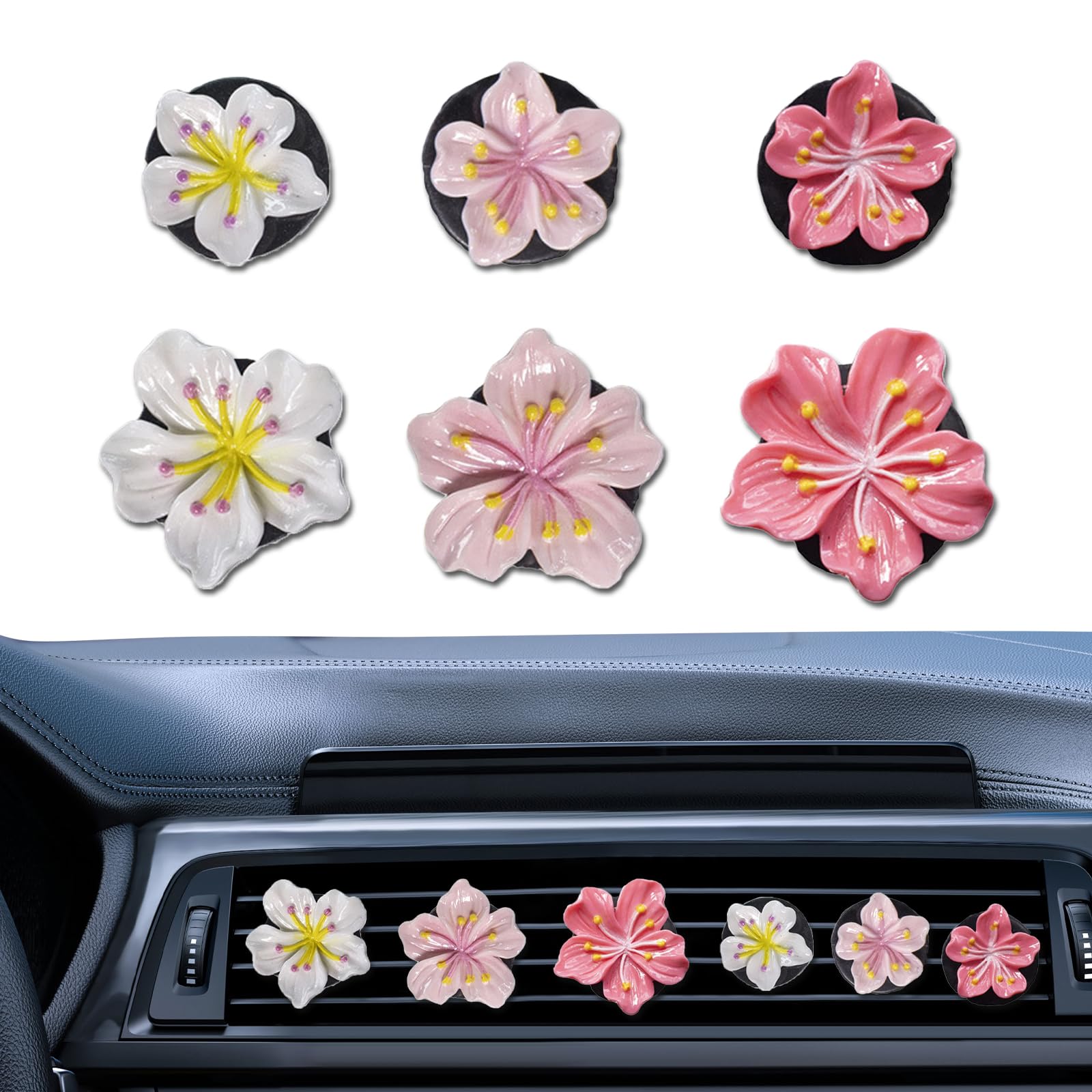 NIIIYTYB 6 clips de ventilación para ambientadores de automóvil, clips de ventilación de flores para ambientadores, hibisco hawaia