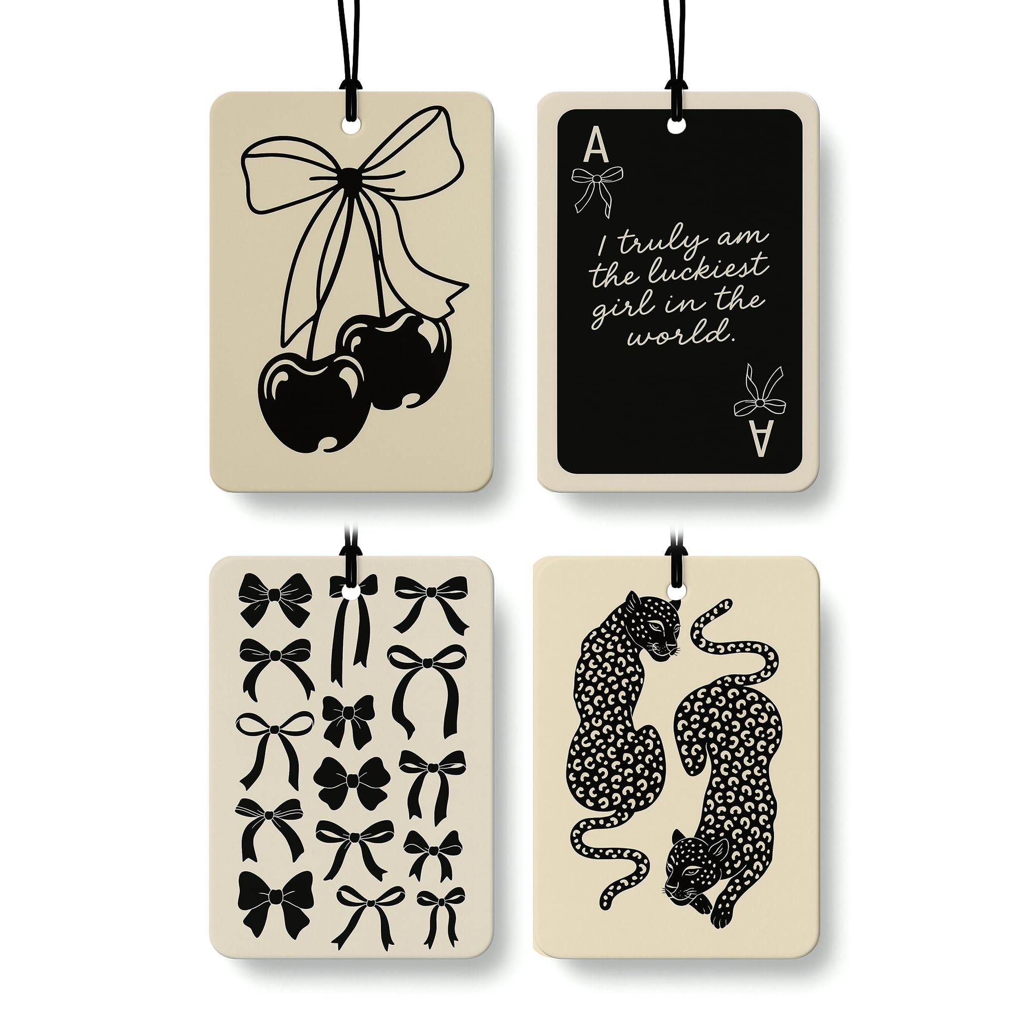 Ambientador de coche femenino de coqueta negra, 4 piezas, lazo retro oscuro, tarjeta de guepardo, guepardo, ambientador colgante p