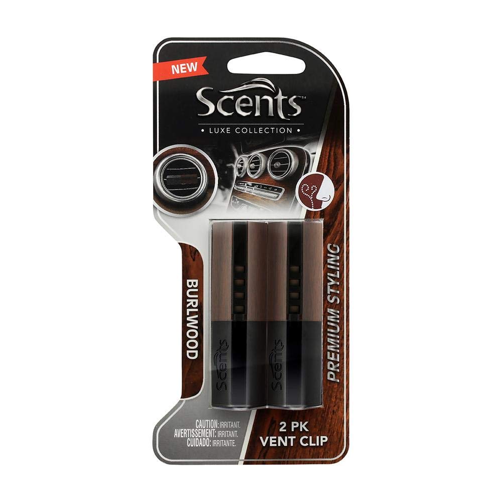 Scents – Clips de ventilación para ambientador de automóvil, colección Luxe Burlwood, paquete de 2, fragancia terrosa natural para